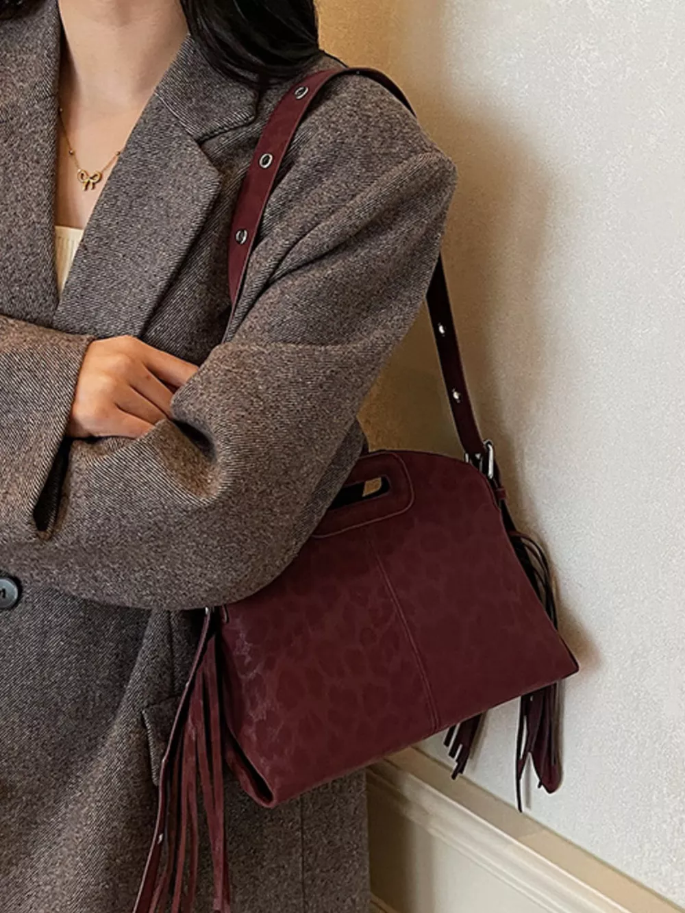 Fringe Leopard Handle Crossbody Bag