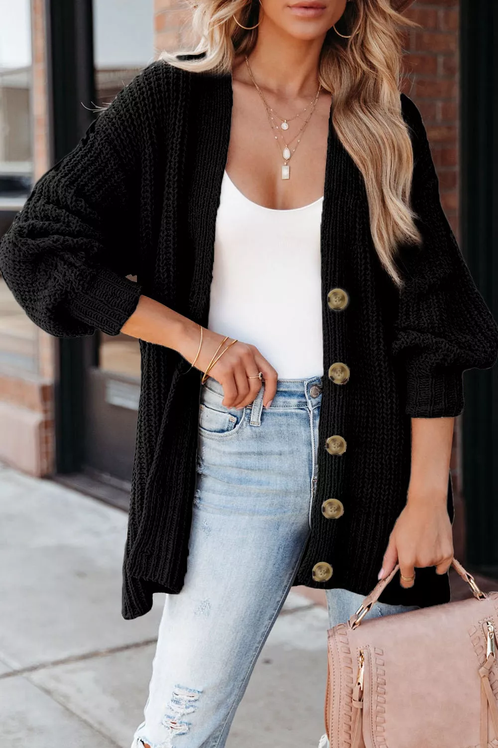 Chunky Knit Button-Down Cardigan