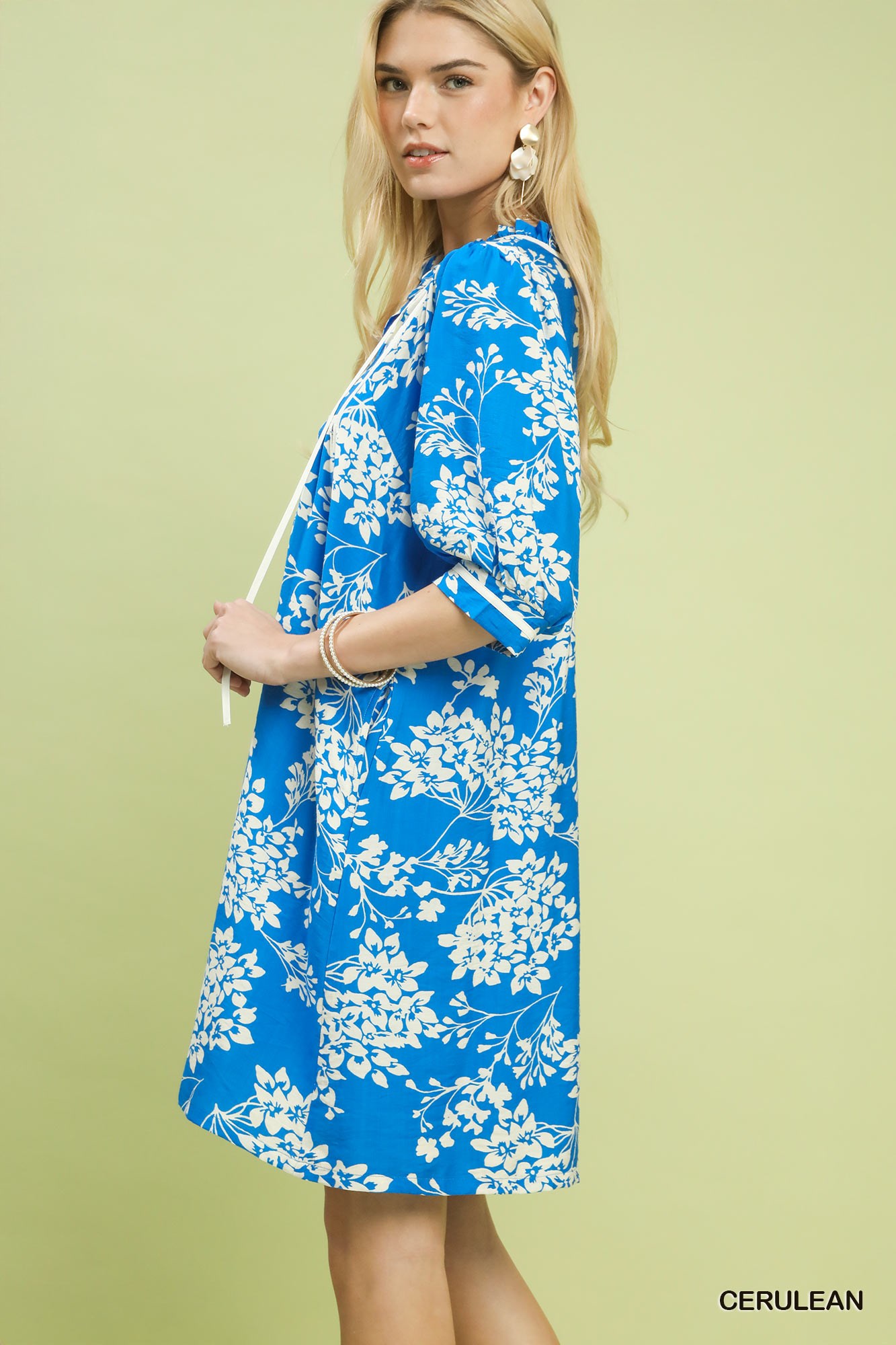 This floral babydoll dress is a charming and versatile piece with key features such as a delightful floral print and mini dress silhouette. The 3/4 sleeves with cuff detail add a touch of elegance to the design. Side pockets offer both style and functionality, perfect for storing small essentials. The contrast trim provides a trendy and eye-catching accent to the dress. With a skirt lined for added coverage, this dress is both stylish and comfortable, making it a wardrobe must-have for any occasion.