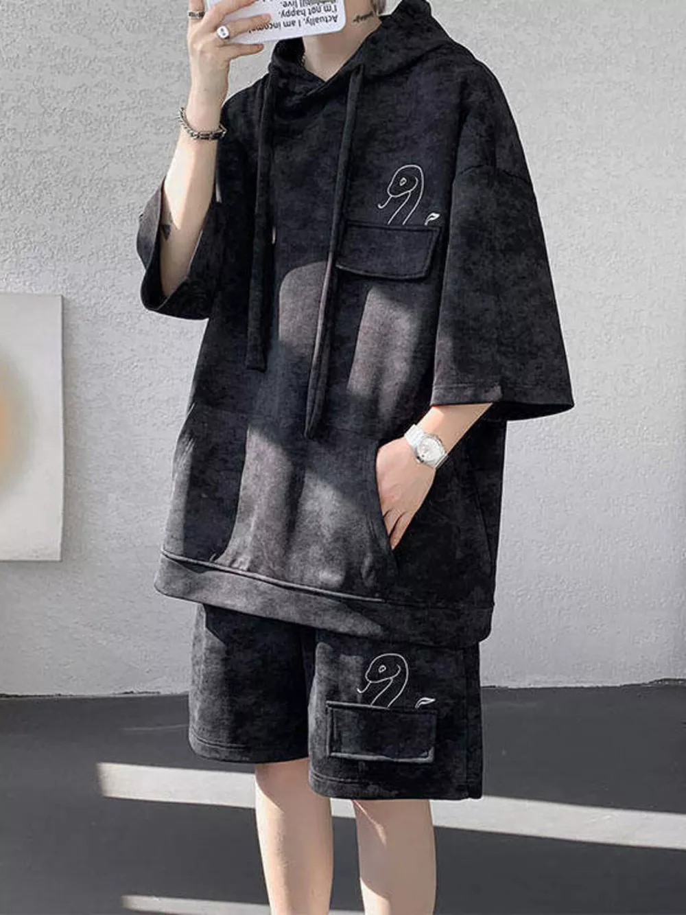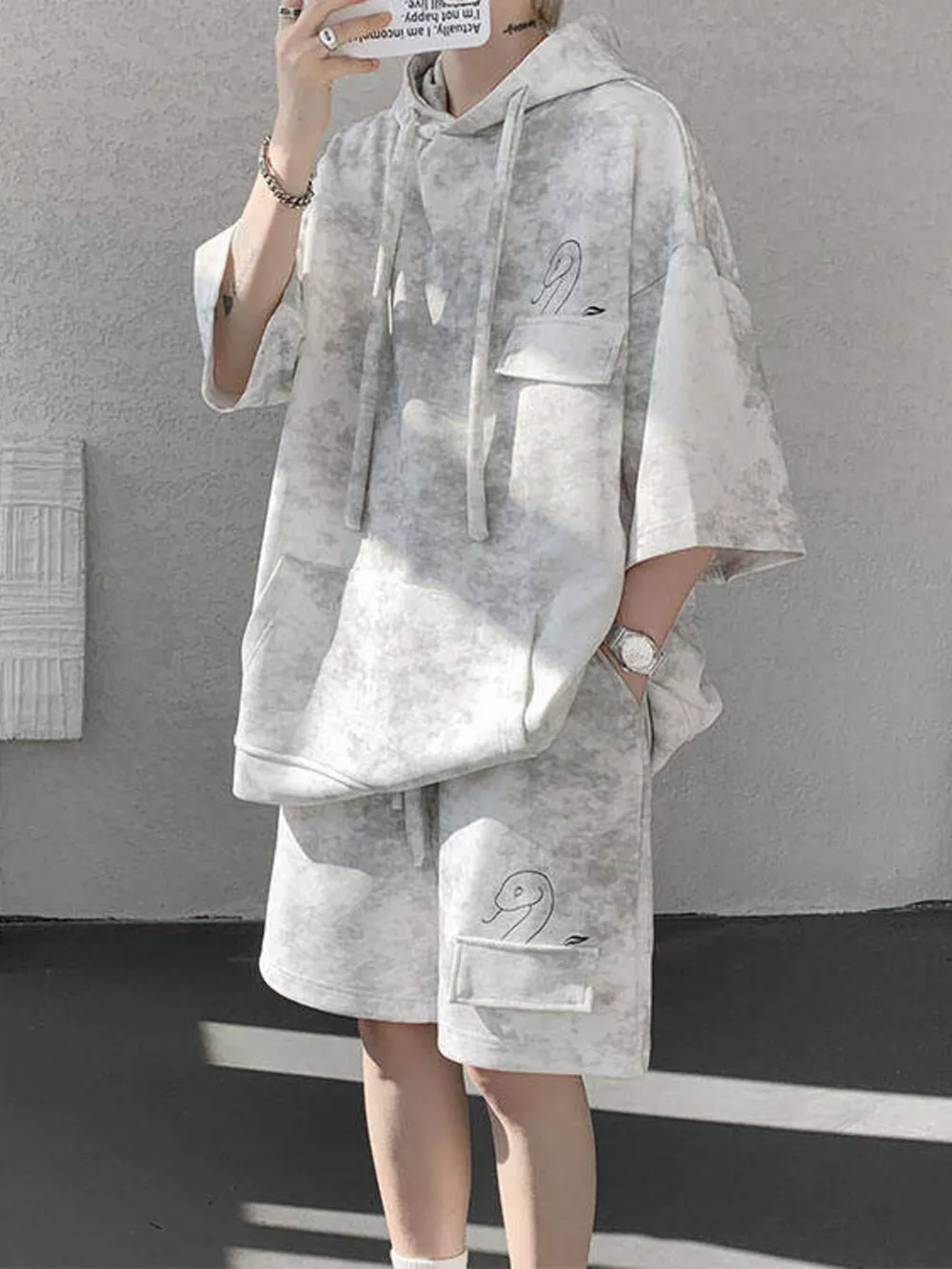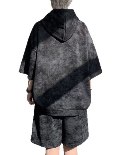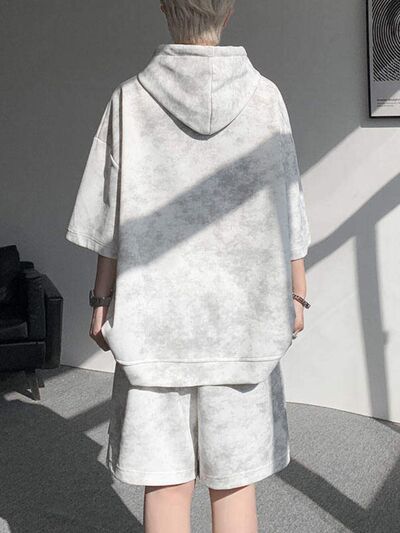 Men's Plus Size Casual Washed Hoodie & Shorts Set