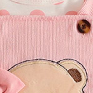 Children's 3-Piece Cute Bear Applique Overalls and Bodysuit Set with Headband