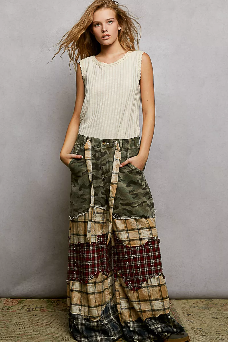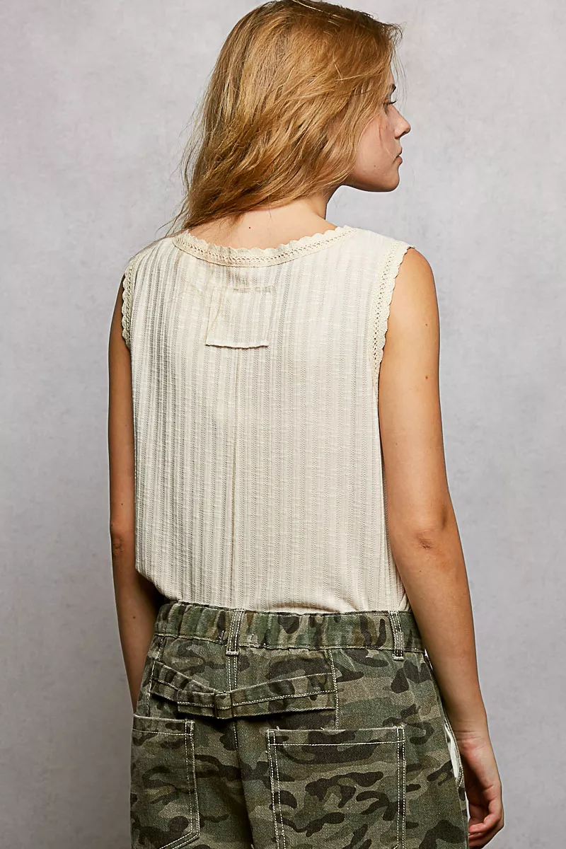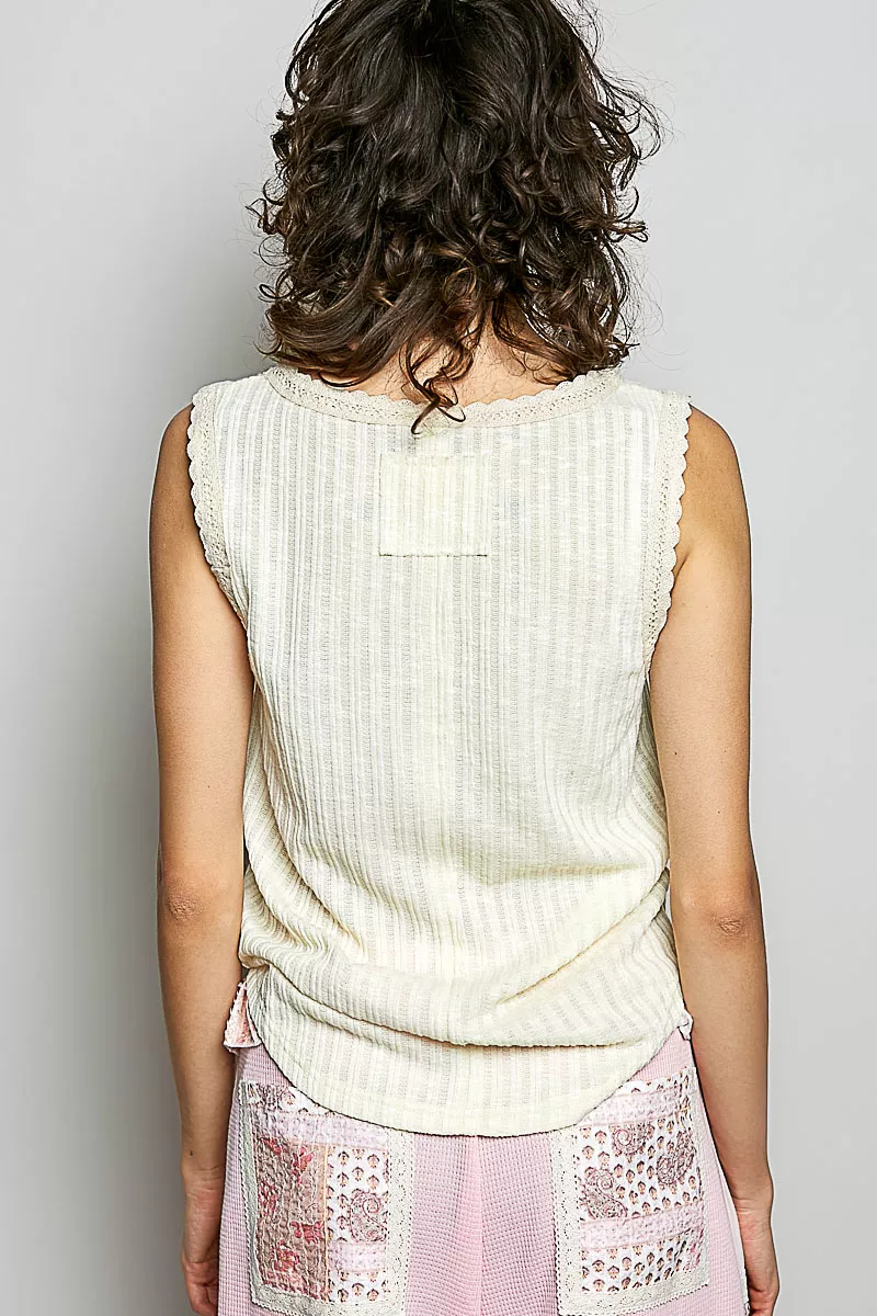 POL Ribbed Round Neck Tank with Lace Trim