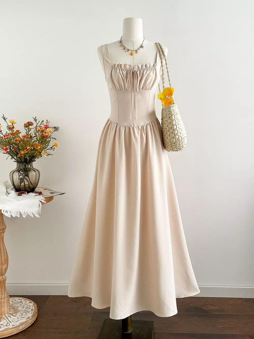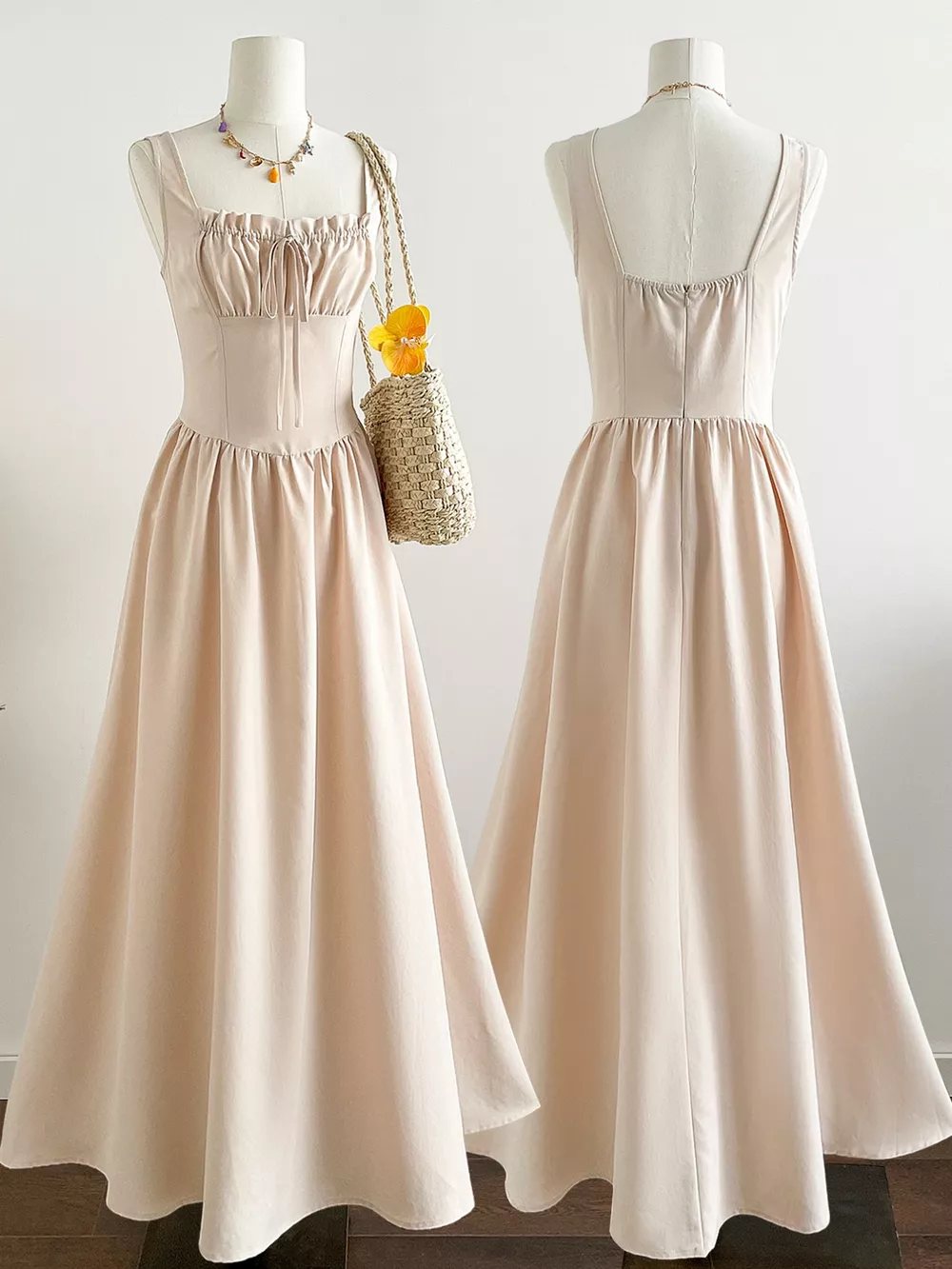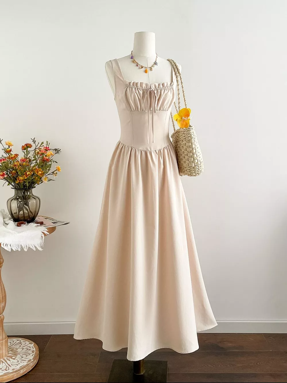 Square Neck Sleeveless A-Line Dress