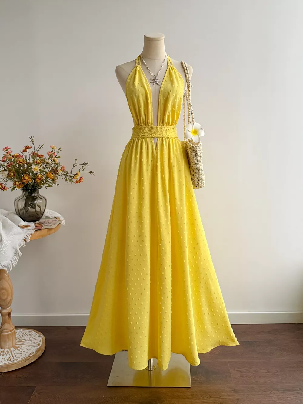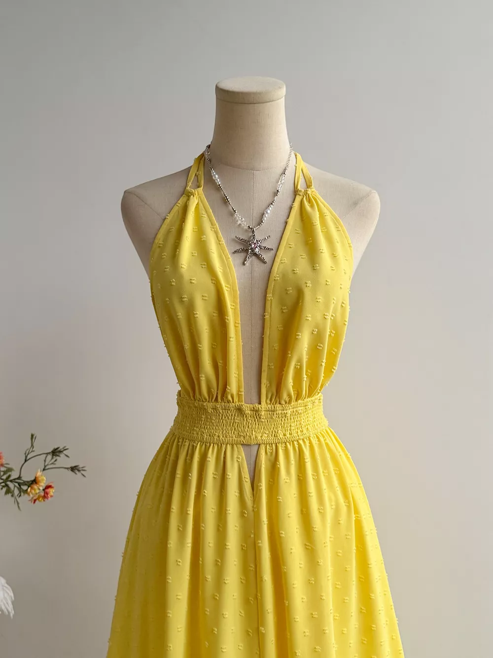 Swiss Dot Halter Neck Dress