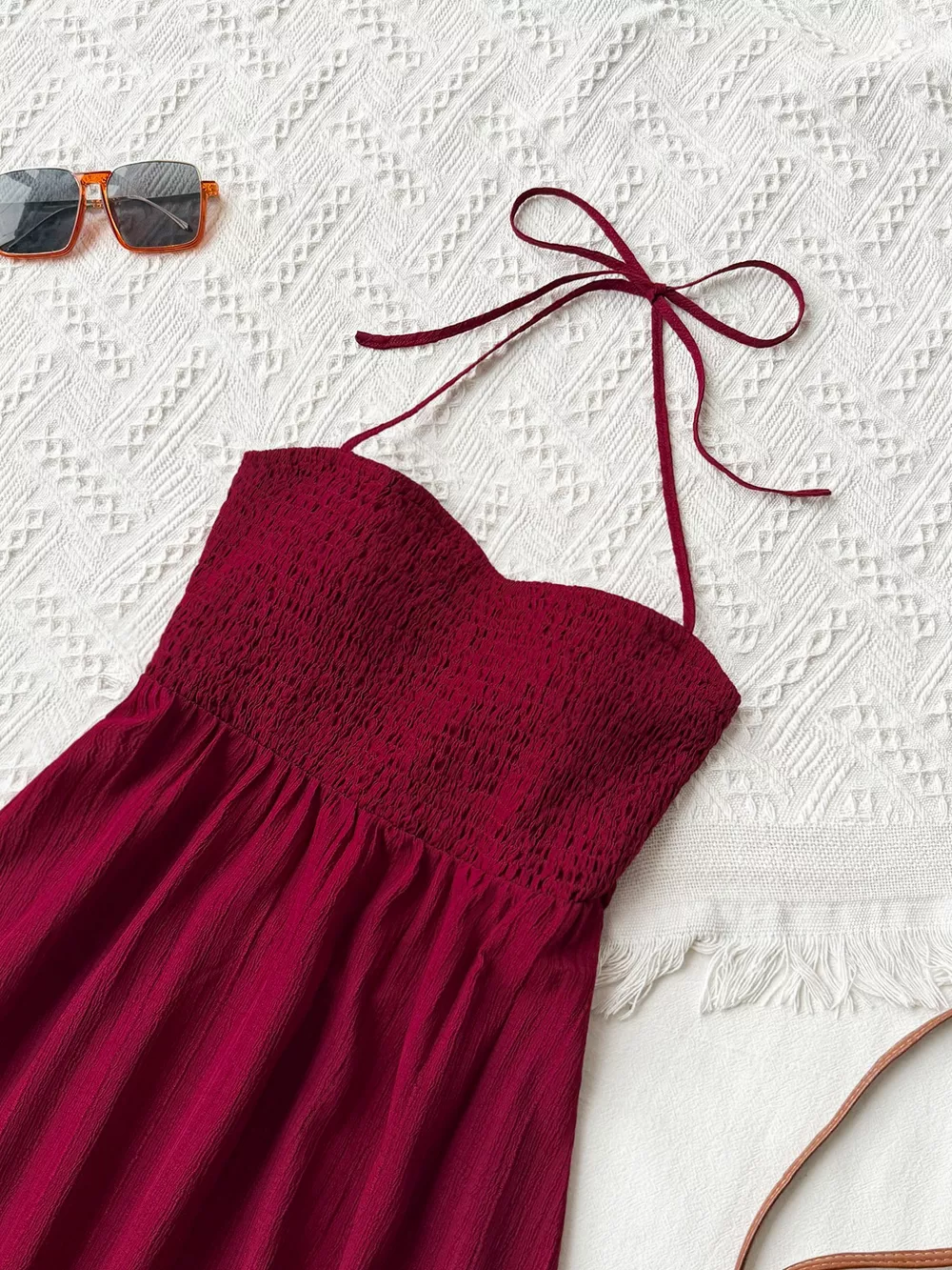 • Features:Tied,Smocked
