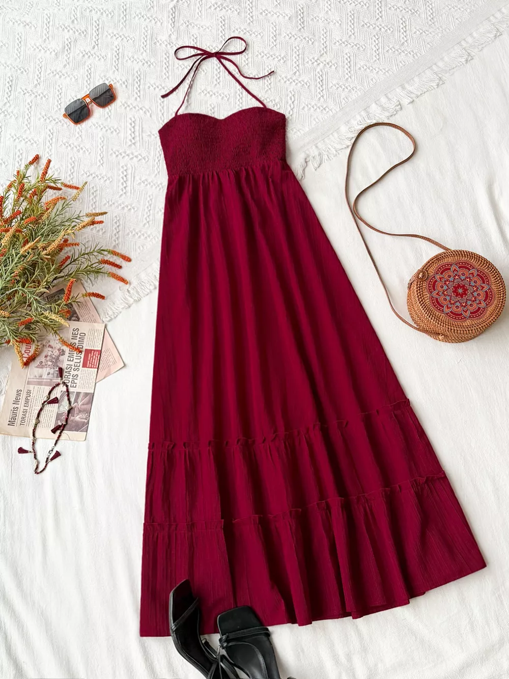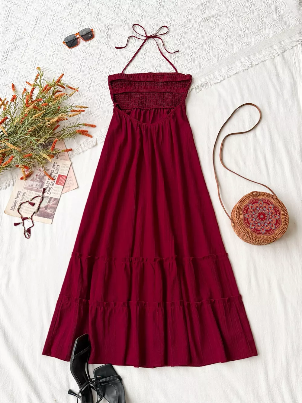 Sweetheart Neck Halter Neck Tiered Dress