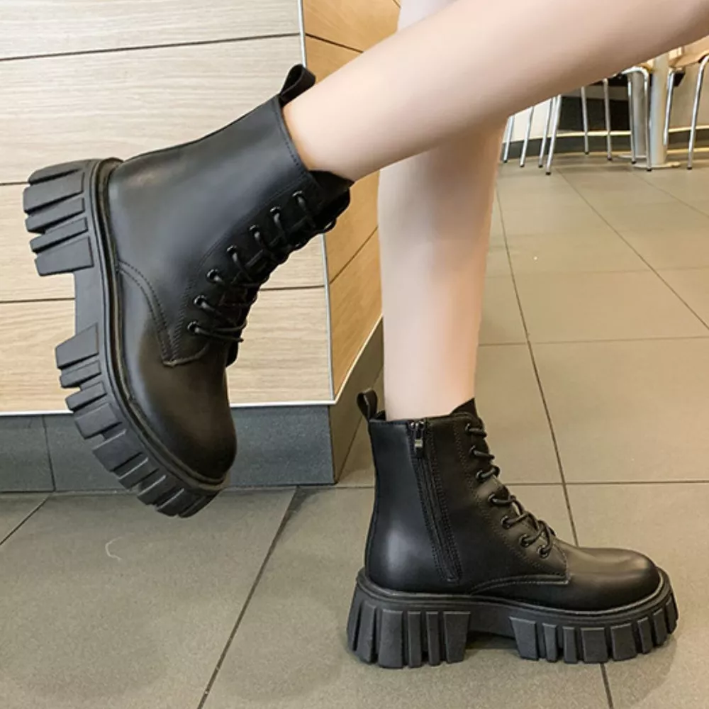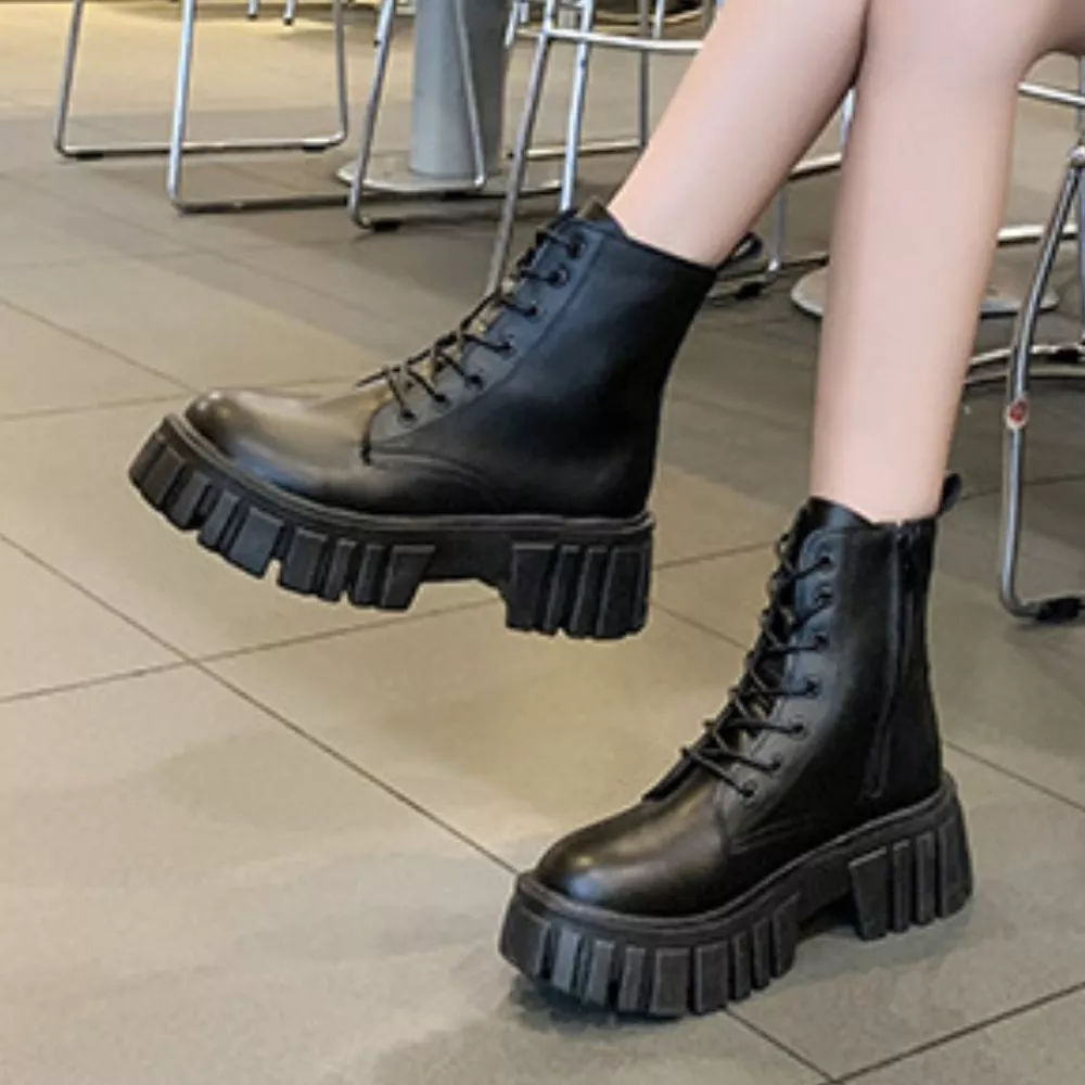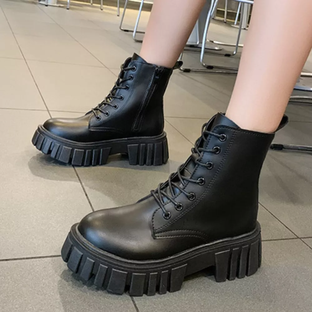 Round Toe Lace-Up Chunky Boots