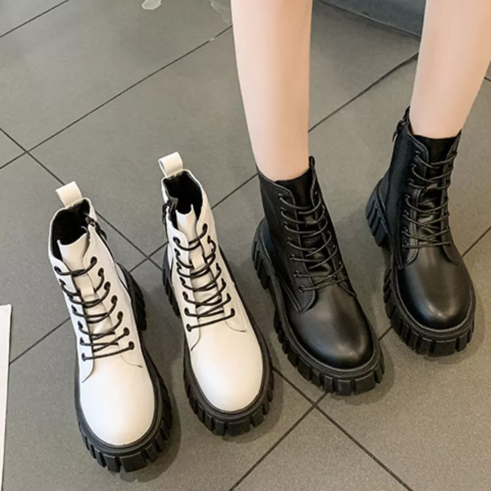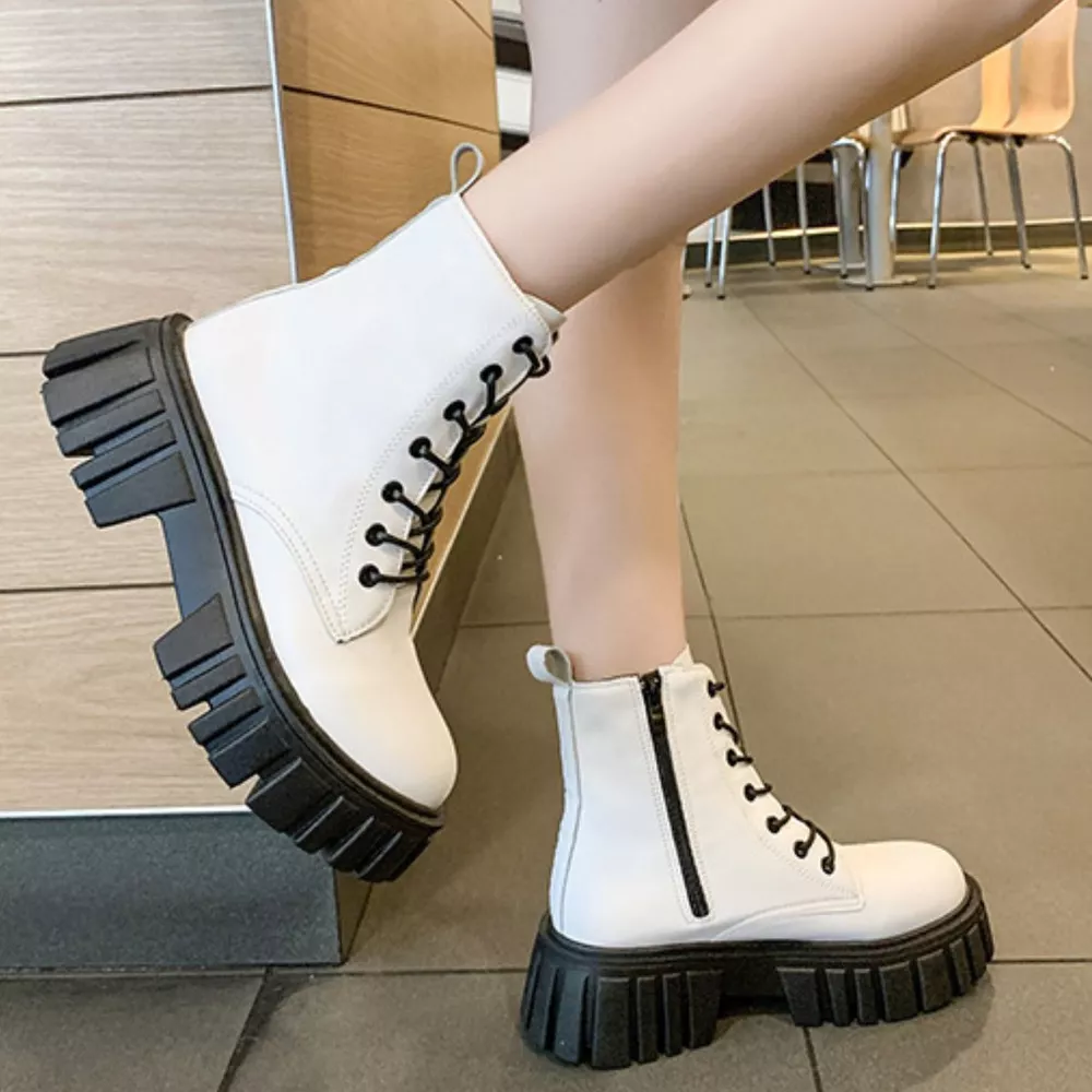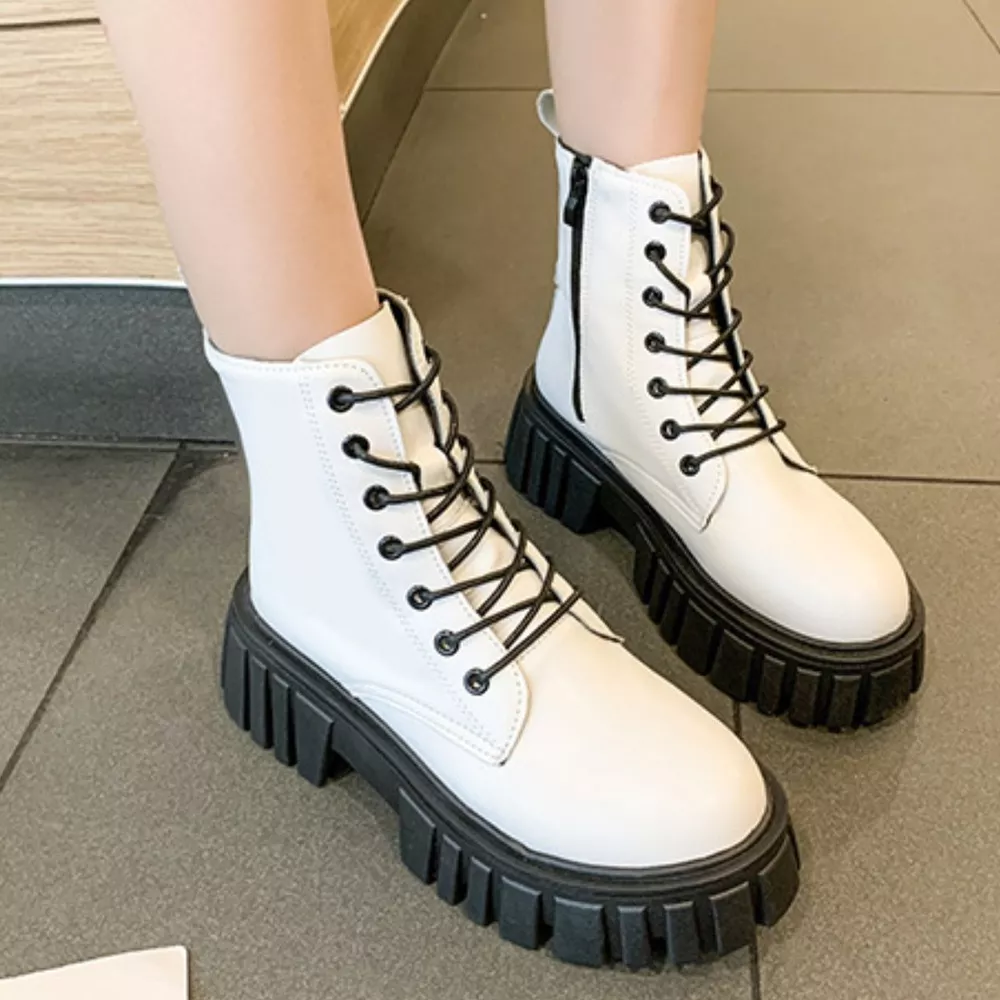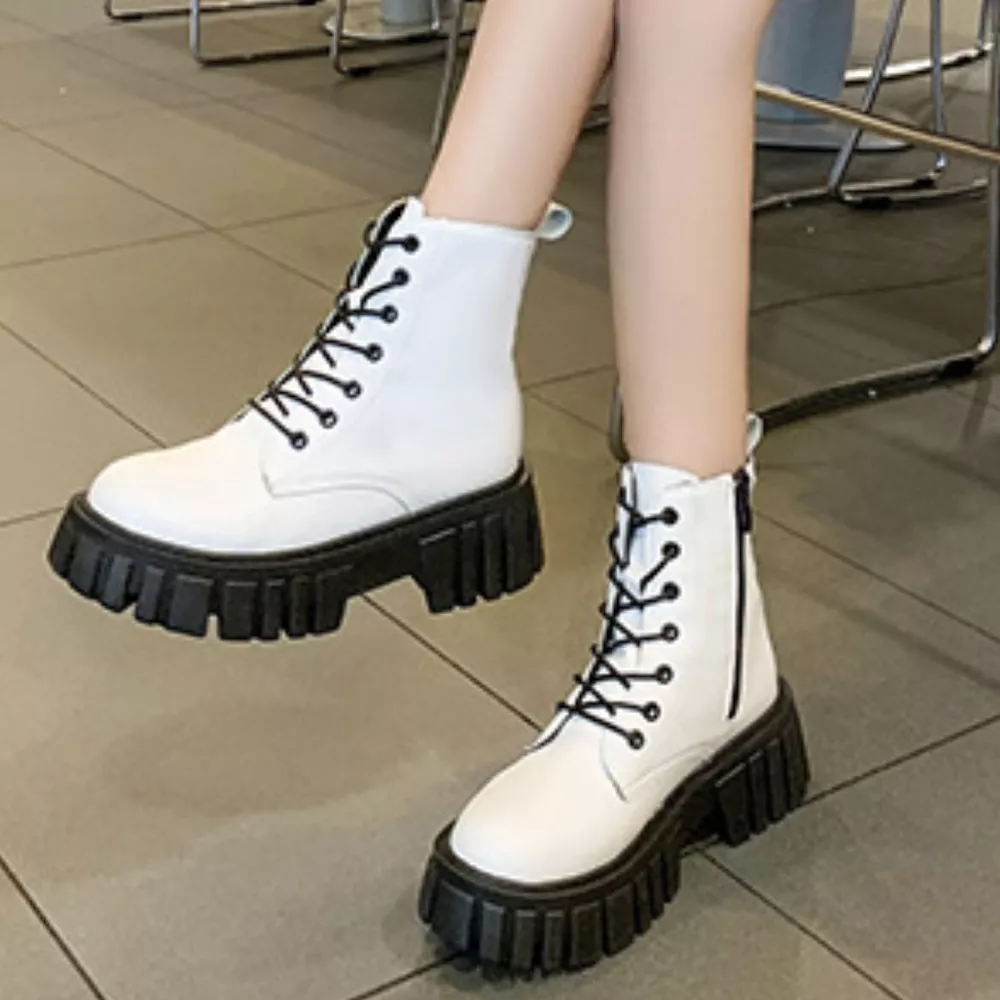 Round Toe Lace-Up Chunky Boots