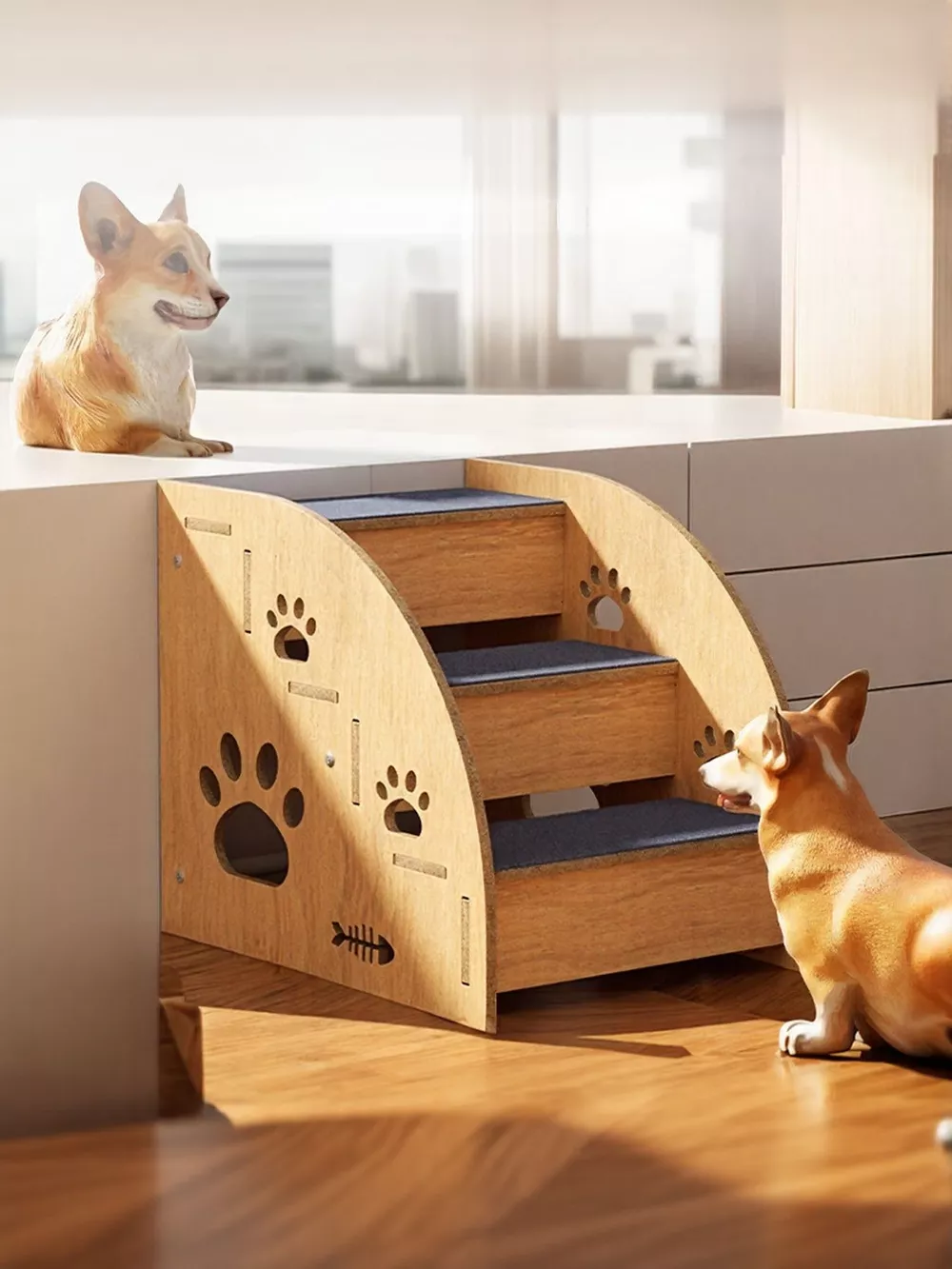Wooden Pet Stairs with Paw Prints