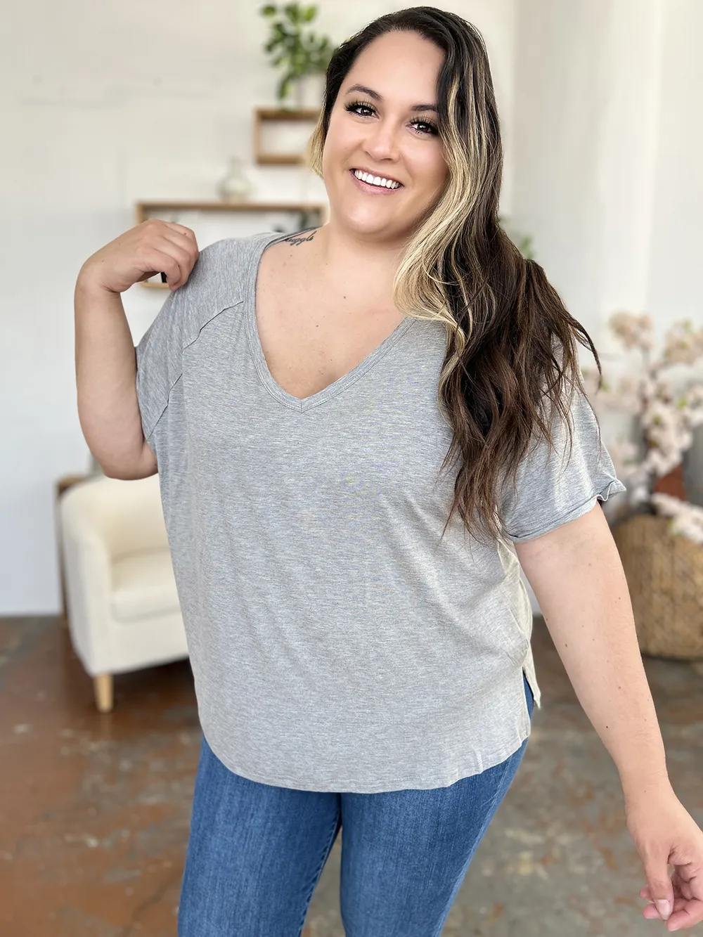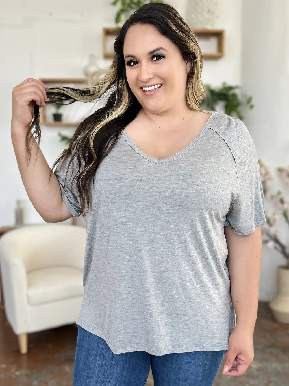 Basic Bae Full Size Bamboo Slit V-Neck Short Sleeve T-Shirt