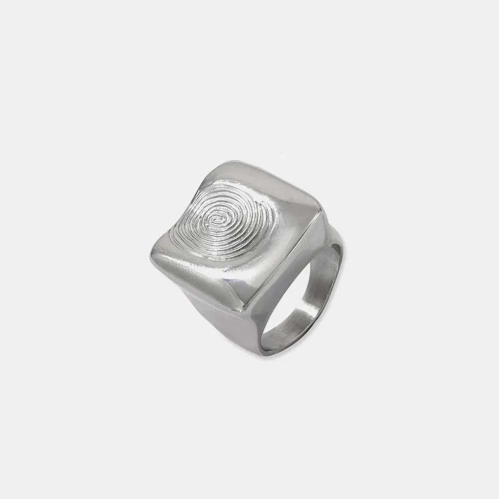 Titanium Steel Fingerprint Signet Ring