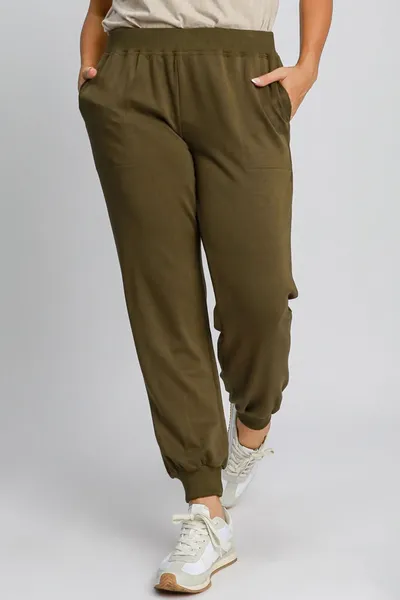 Umgee Full Size High Rise Elastic Waist Knit Joggers with Pockets Plus Size