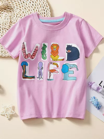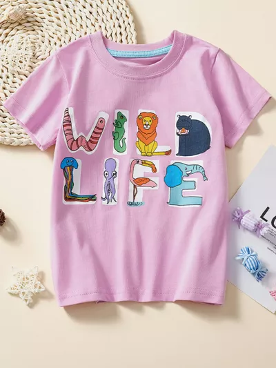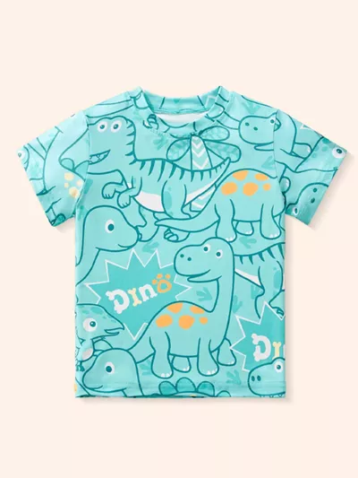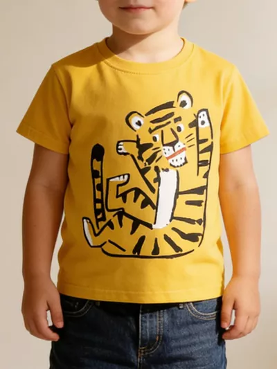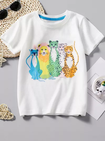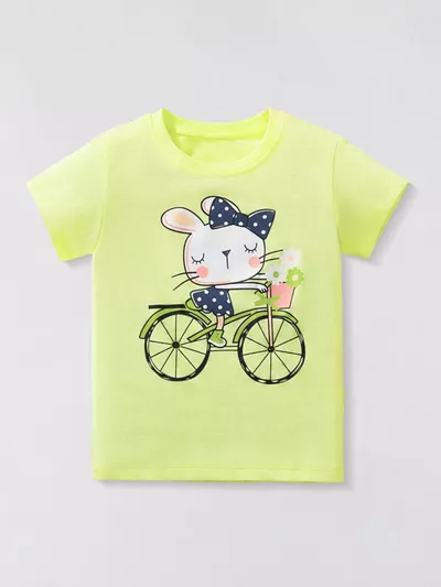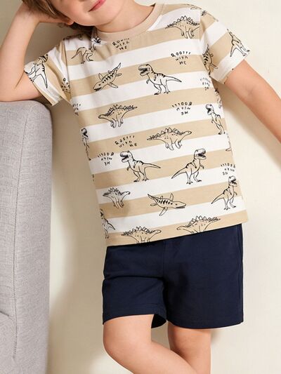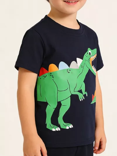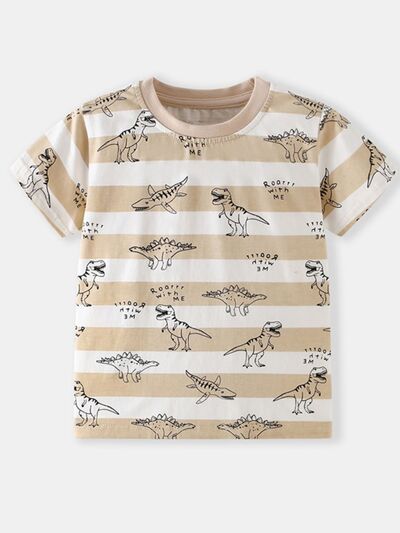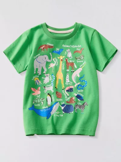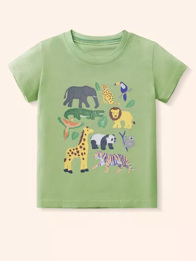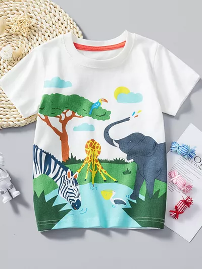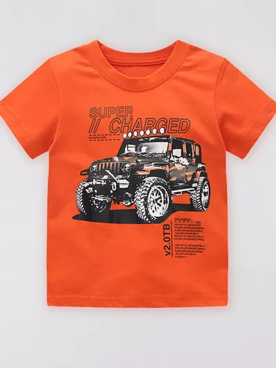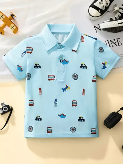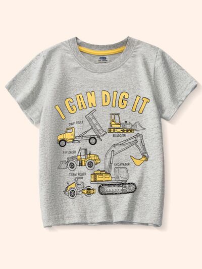 Children's Construction Vehicle Print Crew Neck Short Sleeve T-Shirt
