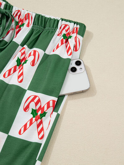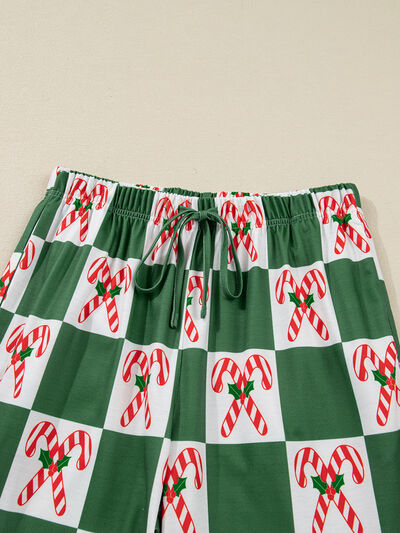 Polka Dot Notched Long Sleeve Top and Drawstring Joggers Lounge Set