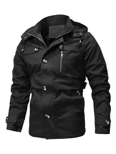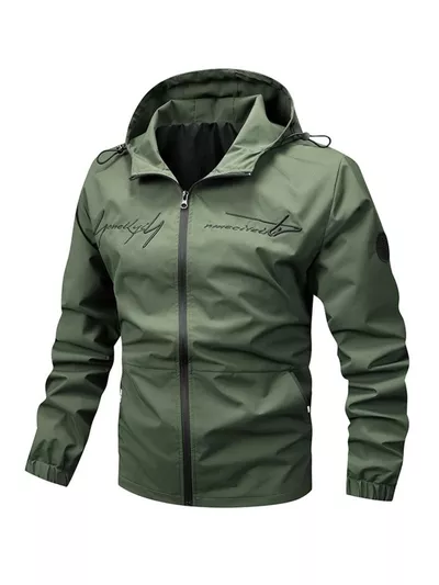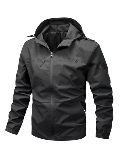 Men's Full Size Casual Zip Up Hooded Windproof Jacket Plus Size
