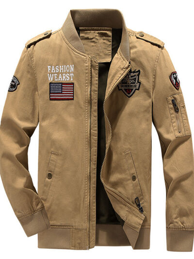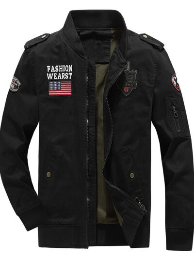 Men's Full Size Zip Up Camouflage Faux Leather Jacket Plus Size
