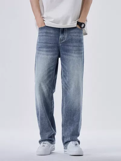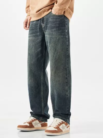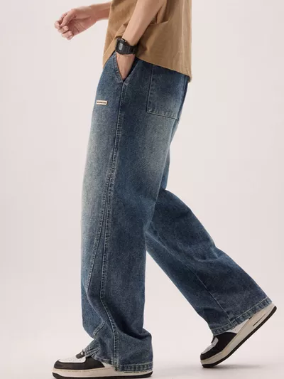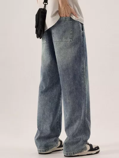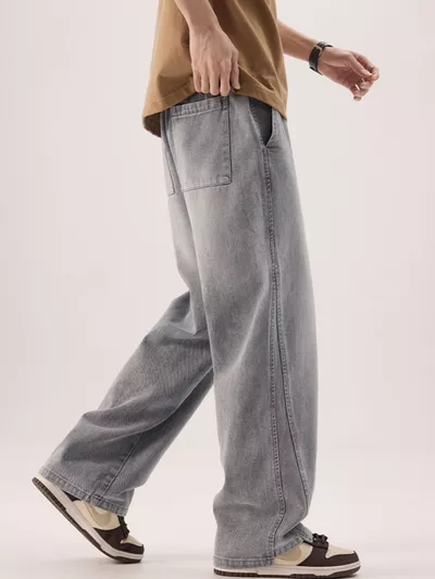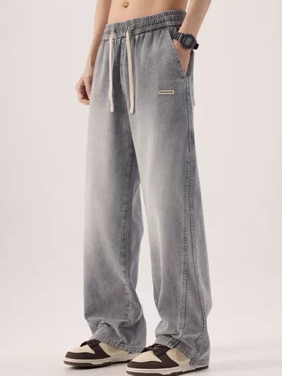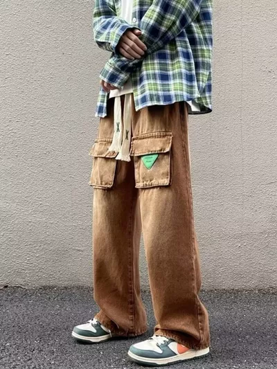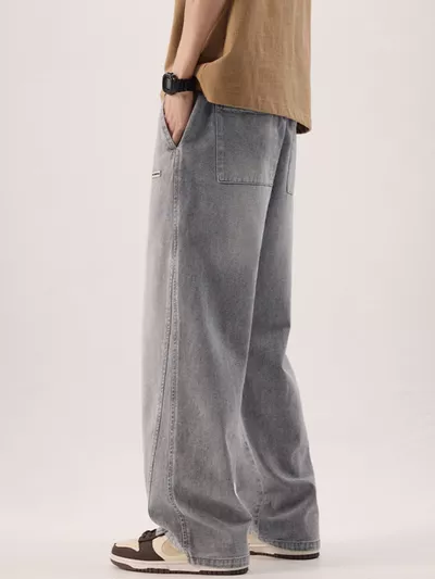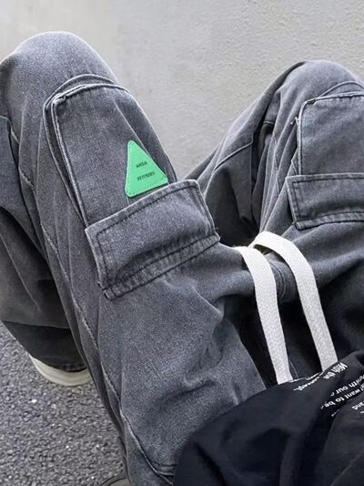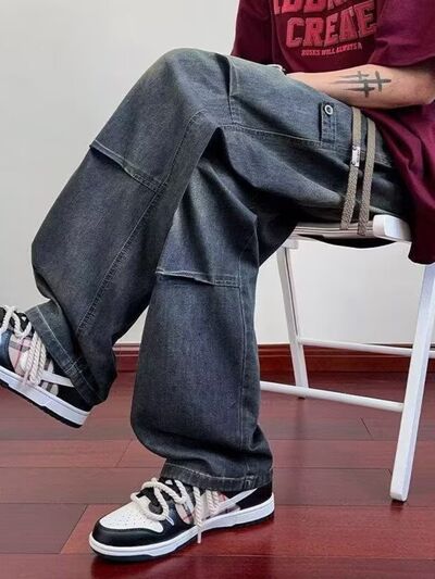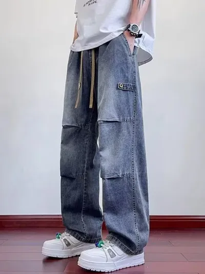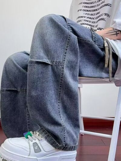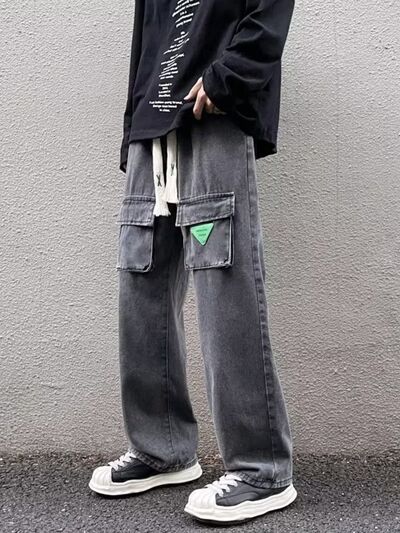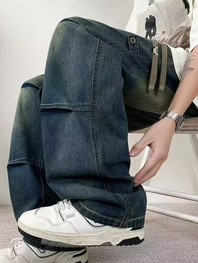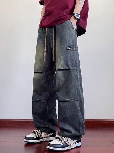 Men's Full Size Loose Fit Cargo Jeans with Drawstring Plus Size