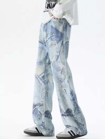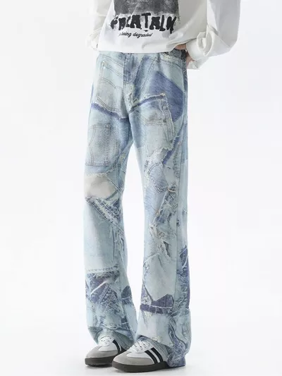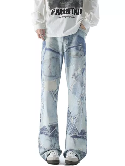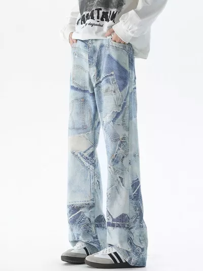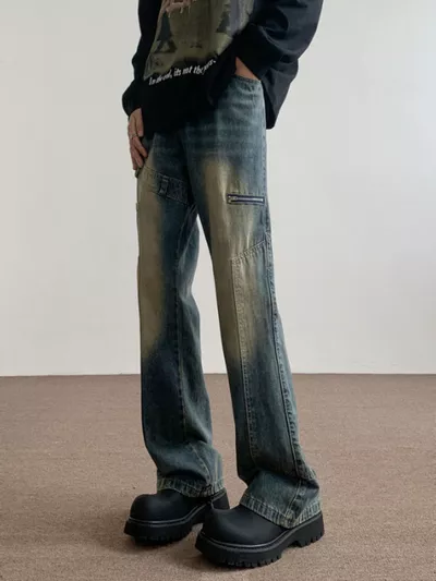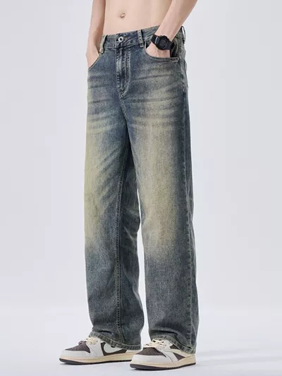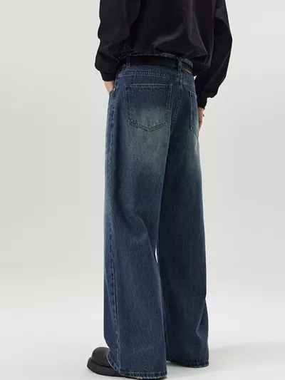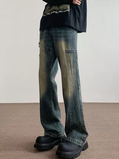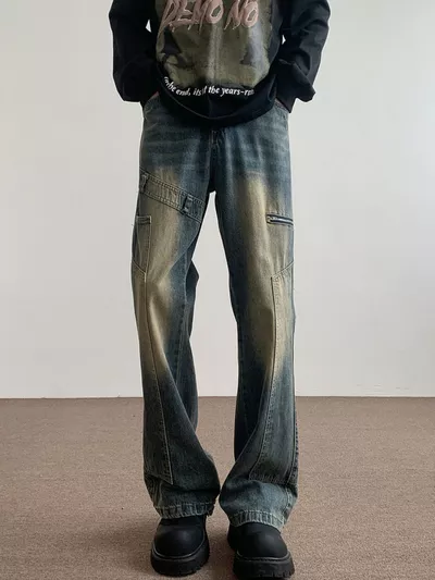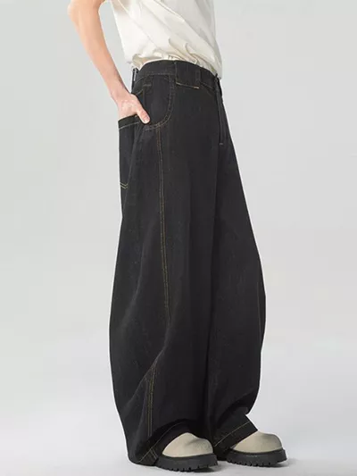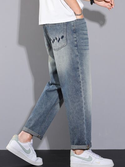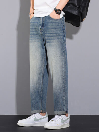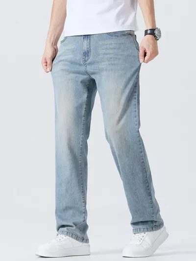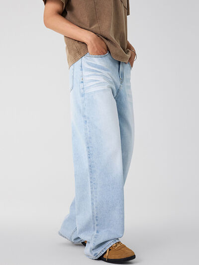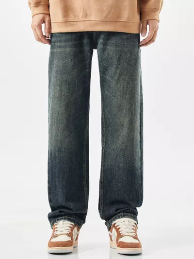 Men's Full Size Loose Fit Cargo Jeans with Drawstring Plus Size