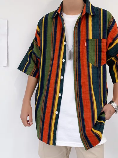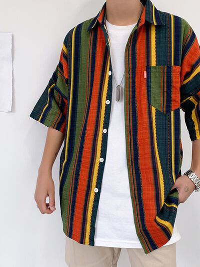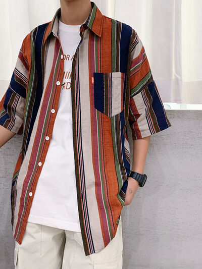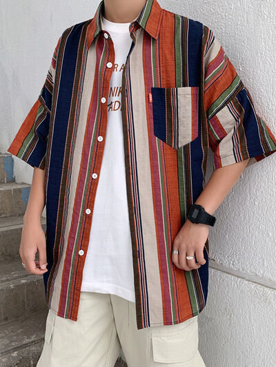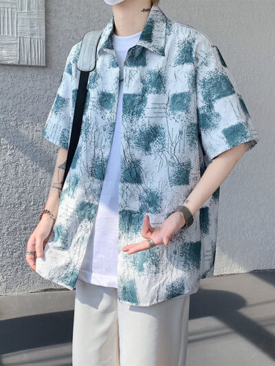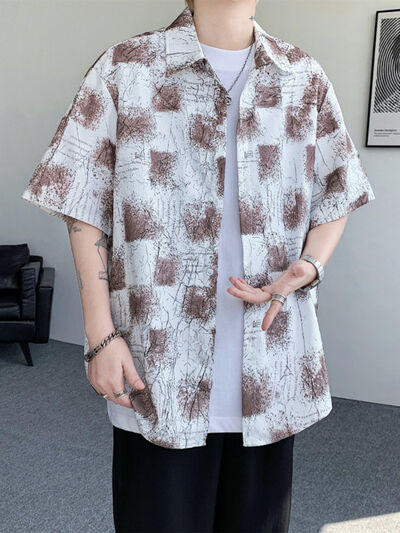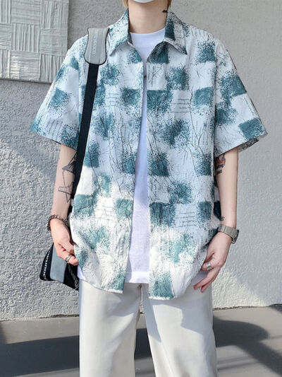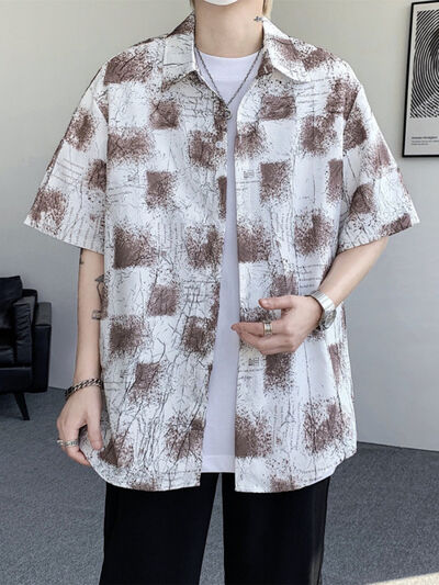 Men's Full Size Casual Short Sleeve Button-Down Shirt Plus Size