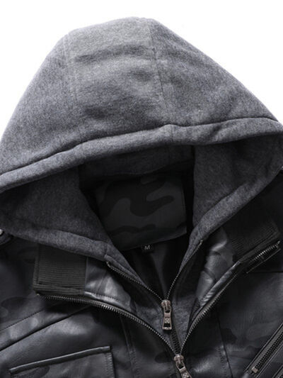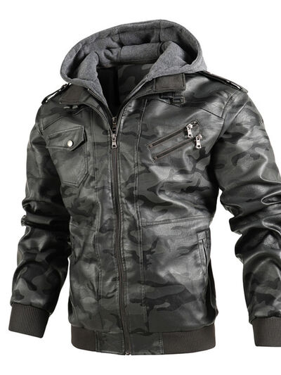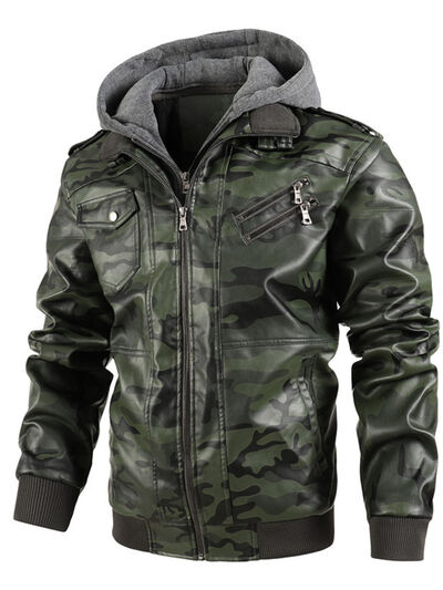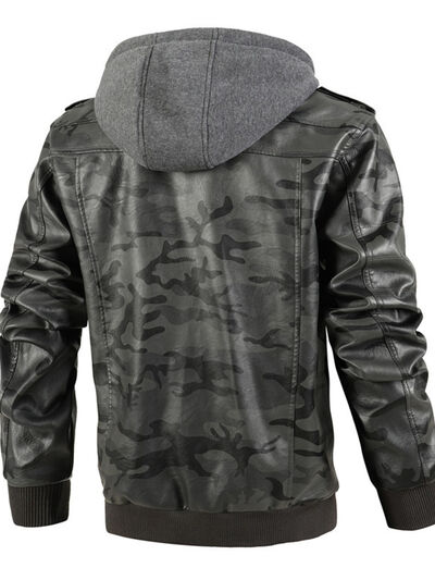 Men's Full Size Camouflage Hooded Faux Leather Jacket Plus Size