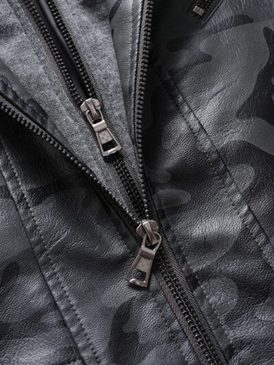 Men's Full Size Zip Up Camouflage Faux Leather Jacket Plus Size