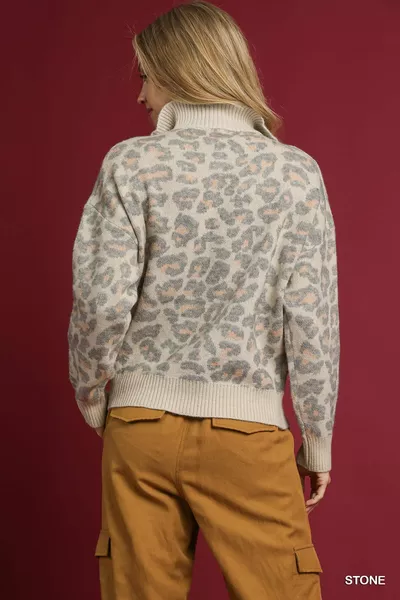 Leopard Drop Shoulder Chunky Knitted Cardigan