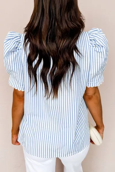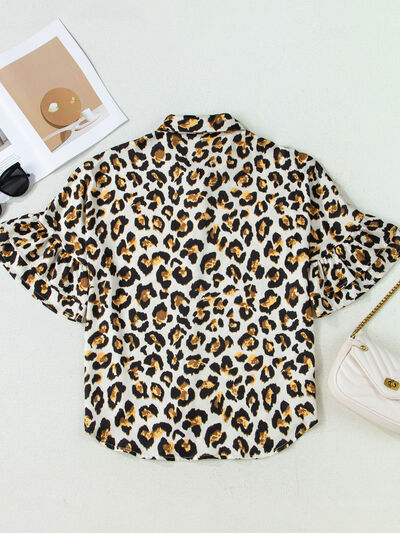 Double Take Full Size Printed Smocked Long Sleeve Blouse