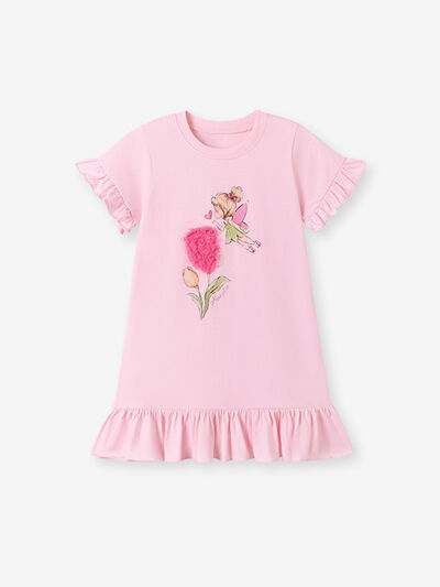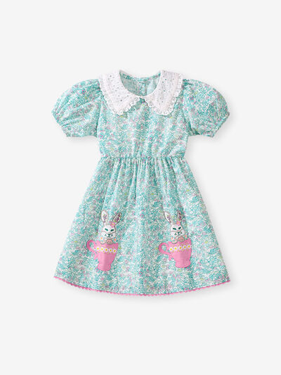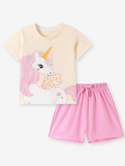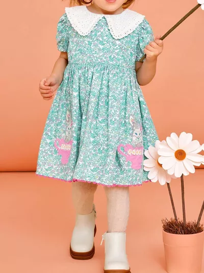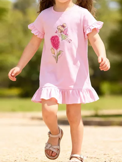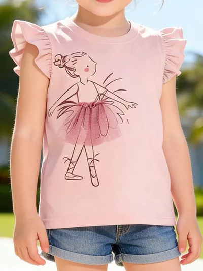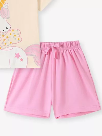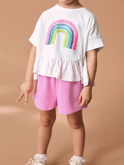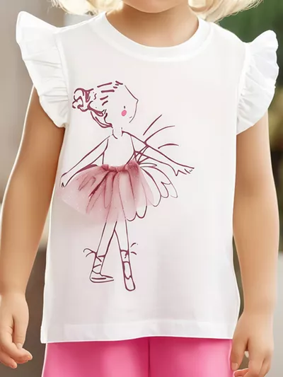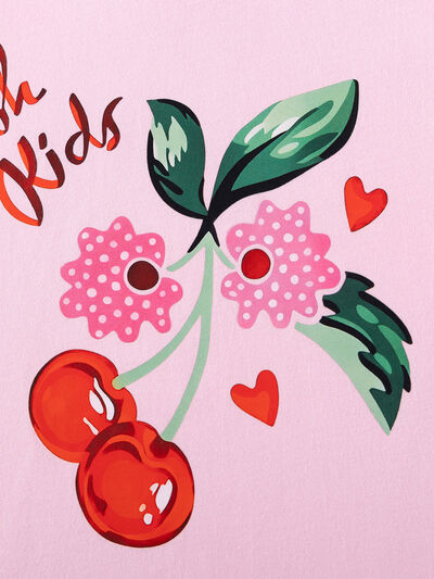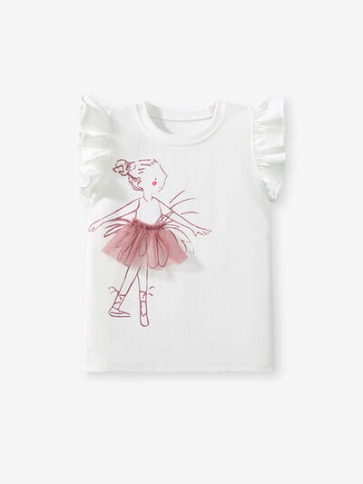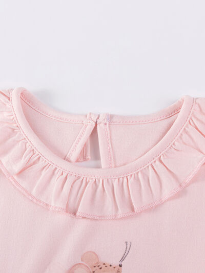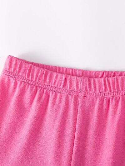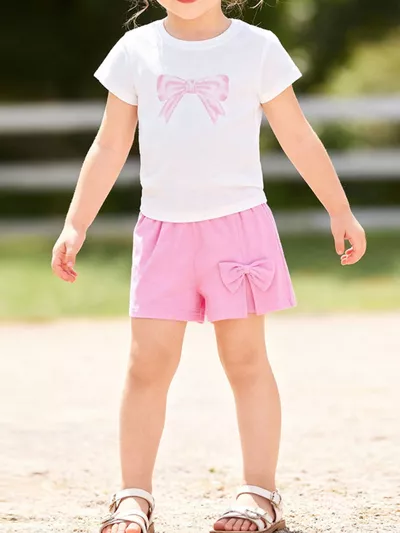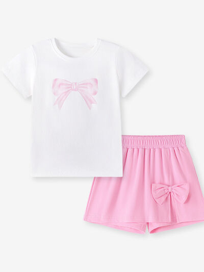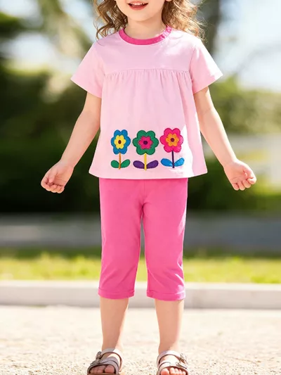 Children's Floral Bowknot Ruffle Sleeve Top & Cropped Pants Set