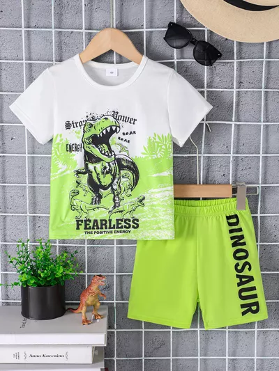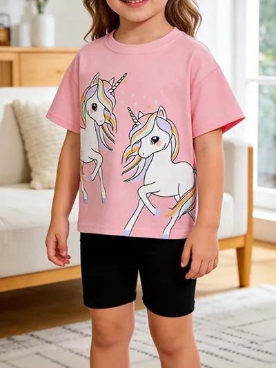 Children's Rainbow Short Sleeve Top and Shorts Two-Piece Casual Set