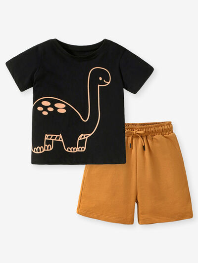 Children's Colorful Striped Polo Shirt and Car Print Shorts Set
