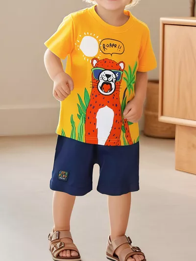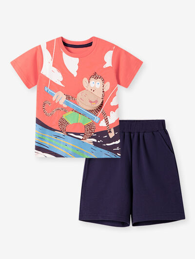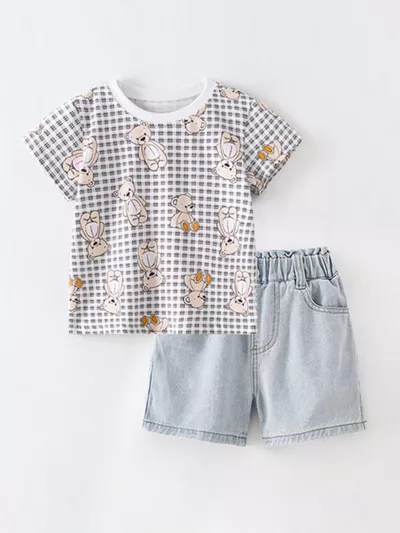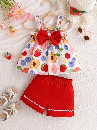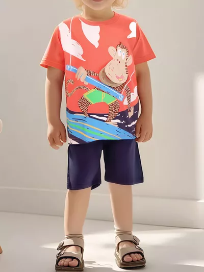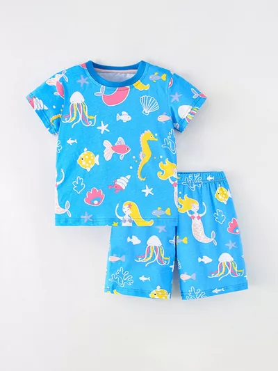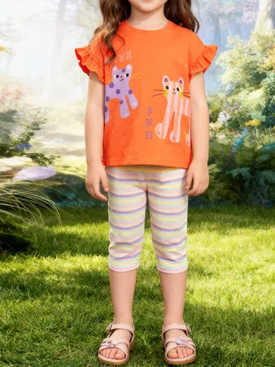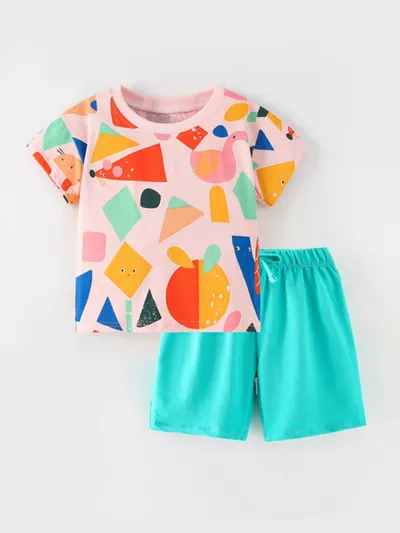 Children's Rainbow Short Sleeve Top and Shorts Two-Piece Casual Set