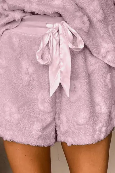 Polka Dot Notched Long Sleeve Top and Drawstring Joggers Lounge Set