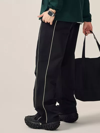 Men's Full Size Snap-Button Pants with Side Stripe Detail Plus Size