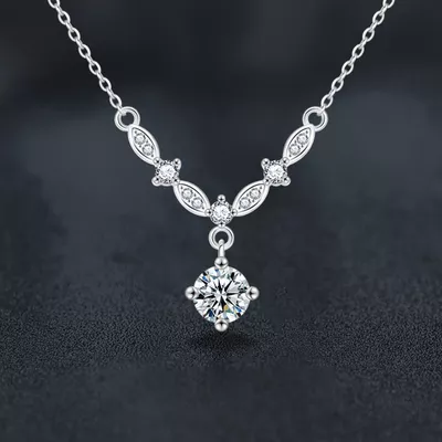 1 Carat Moissanite 925 Sterling Silver Deer Antler Pendant Necklace