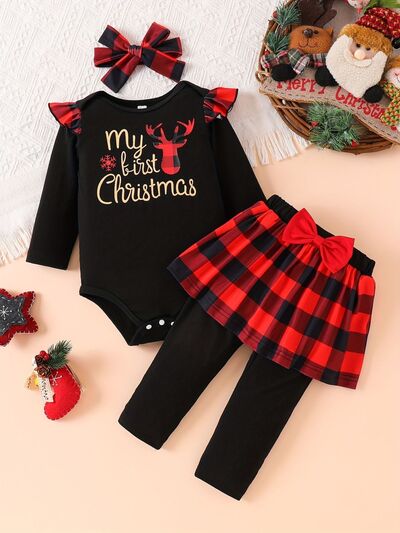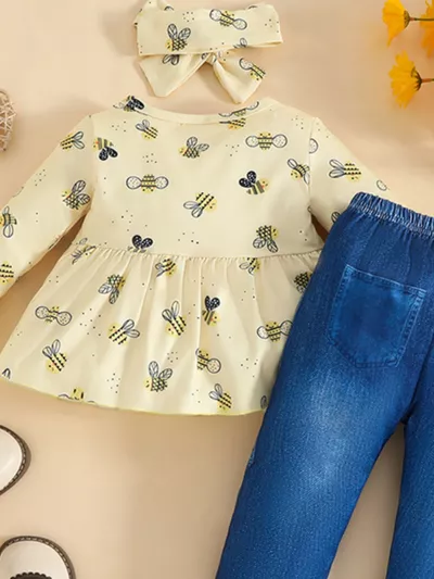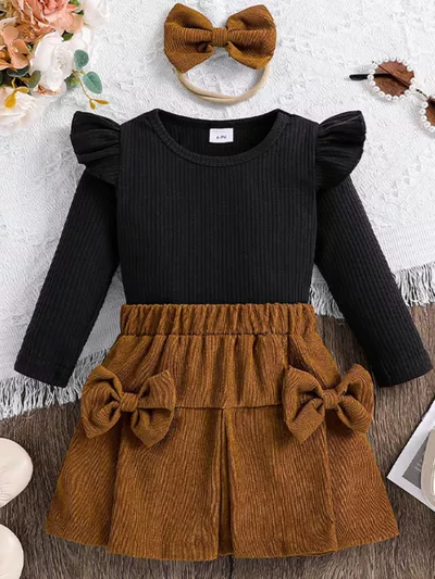Children's Ruffled Floral Bodysuit and Bloomer, Headband Set