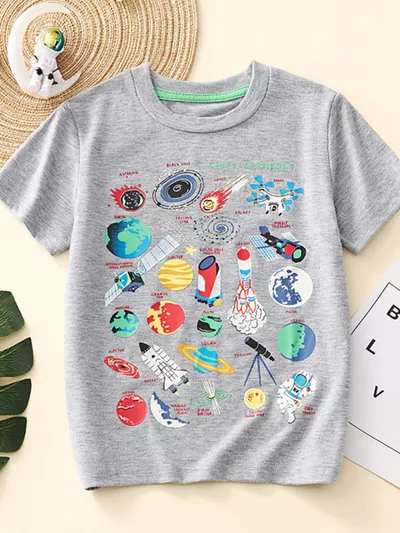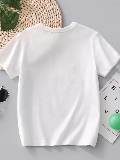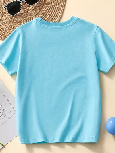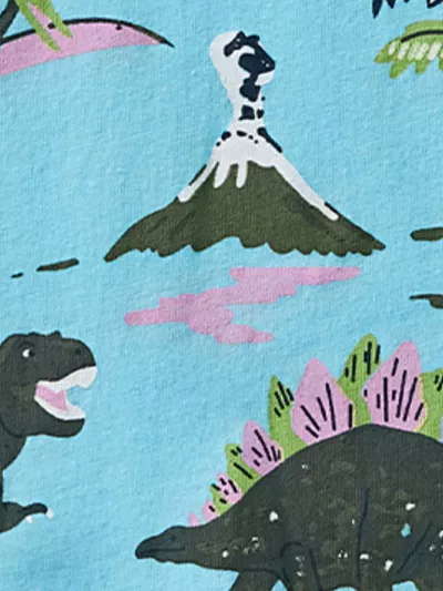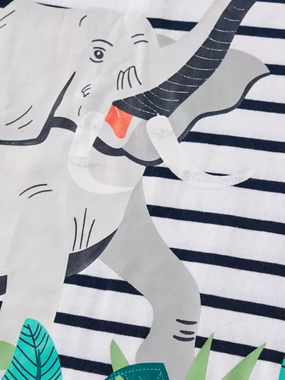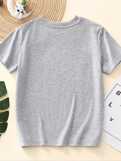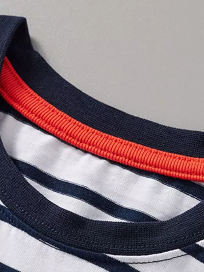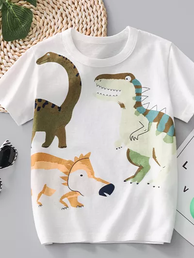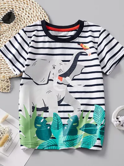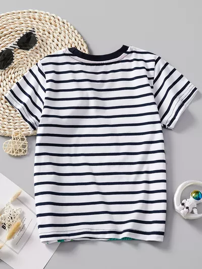 Children's Dinosaur Print Striped Crew Neck Short Sleeve T-Shirt