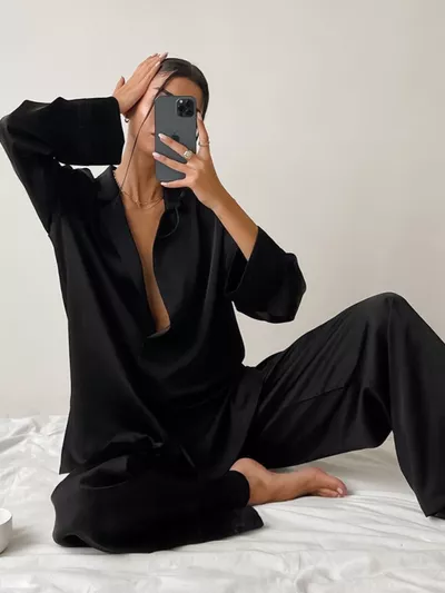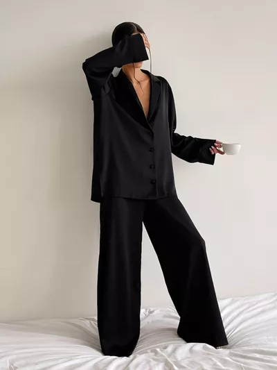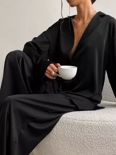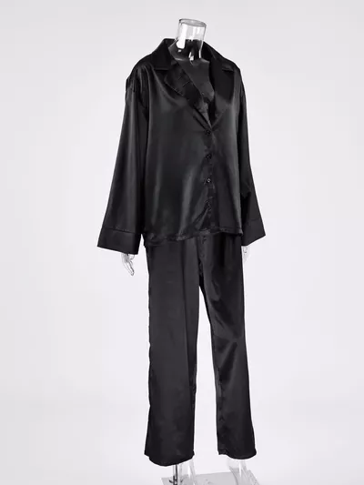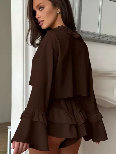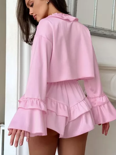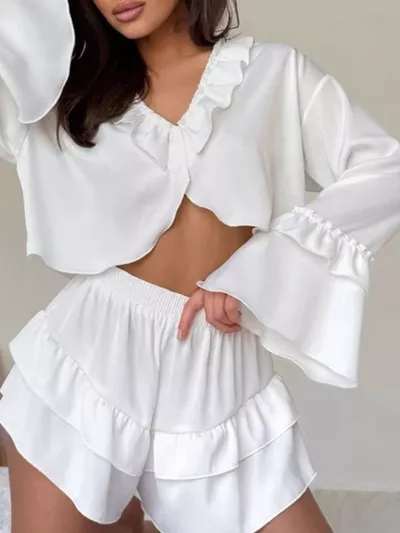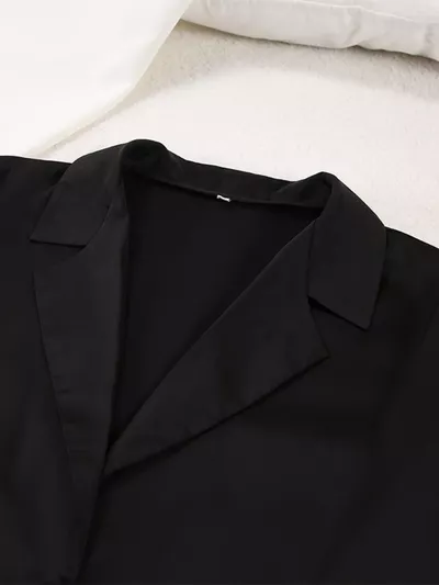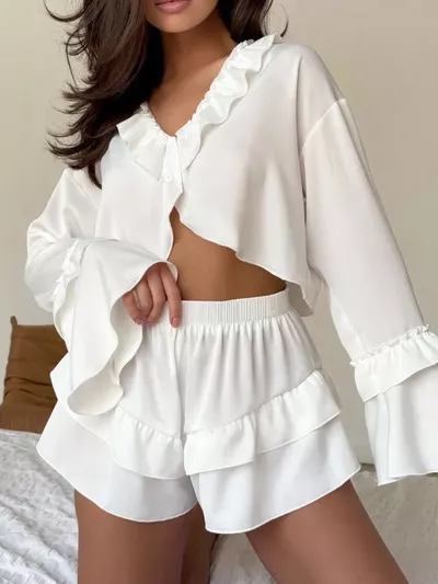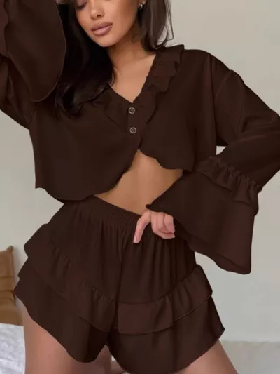 Color Block Patchwork Textured Long Sleeve Top and Short Lounge Set