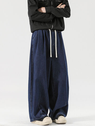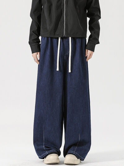 Men's Full Size Casual Drawstring Wide Leg Sweatpants Plus Size