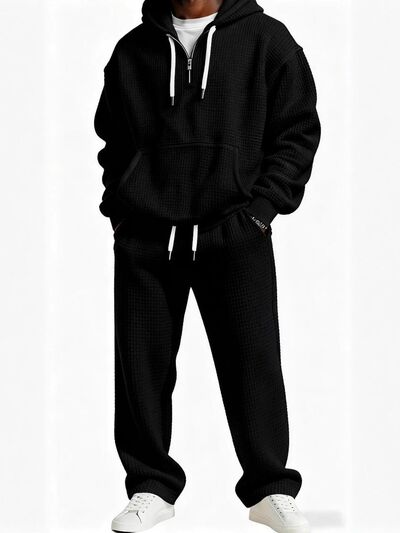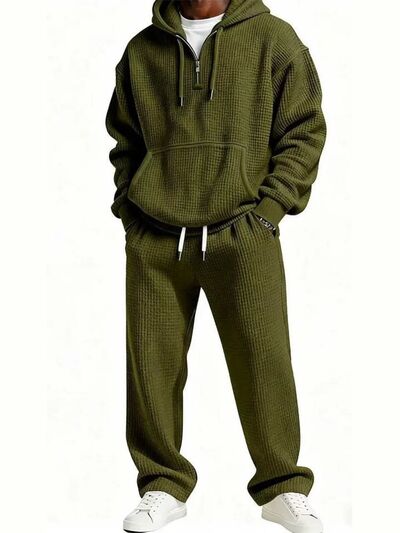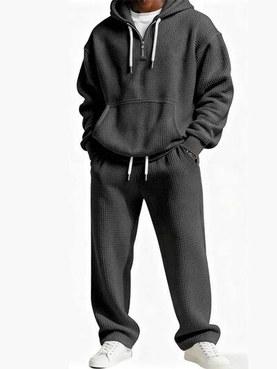 Men's Full Size Zip Front Short Sleeve Top and Shorts Set Plus Size