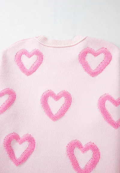 BiBi Textured Heart Buttoned V Neck Cardigan