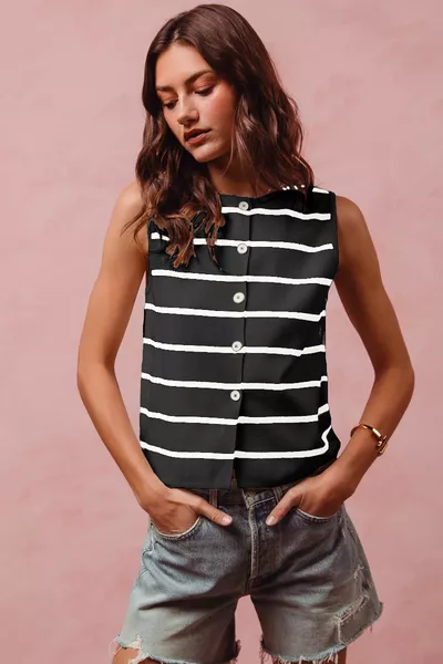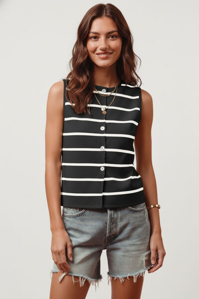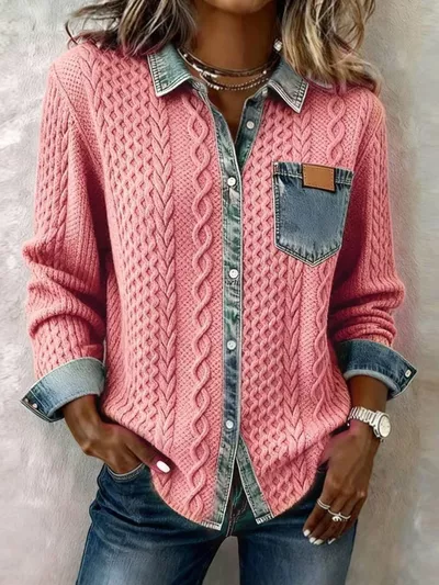 Full Size Denim Trim Button Detail Ribbed Knit Top Plus Size