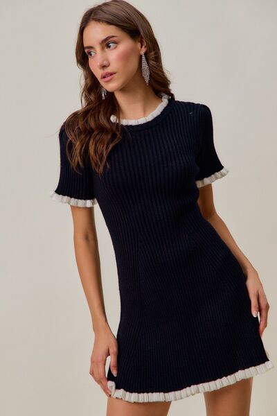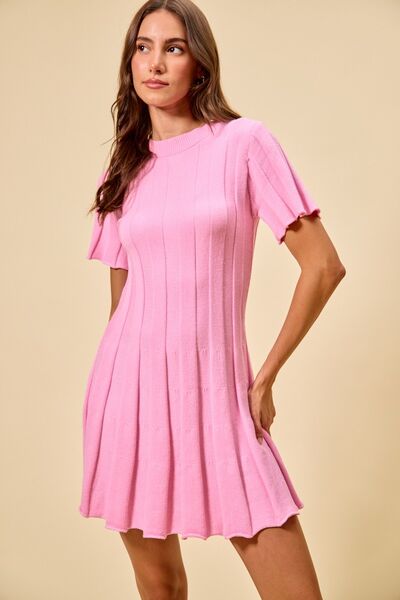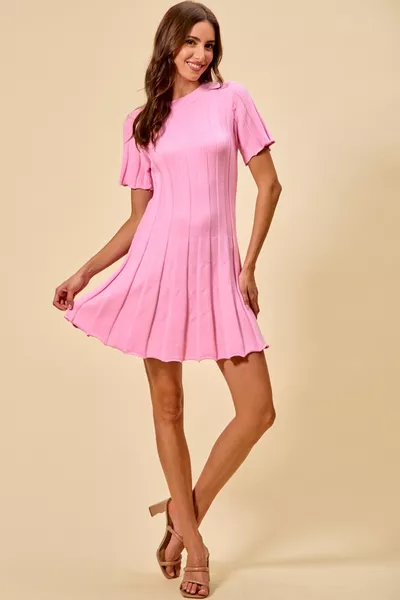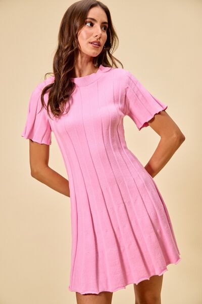 Round Neck Short Sleeve Knit Top with Center Seam Detail