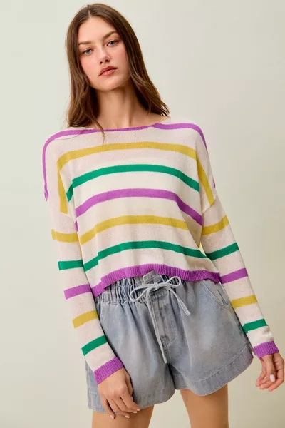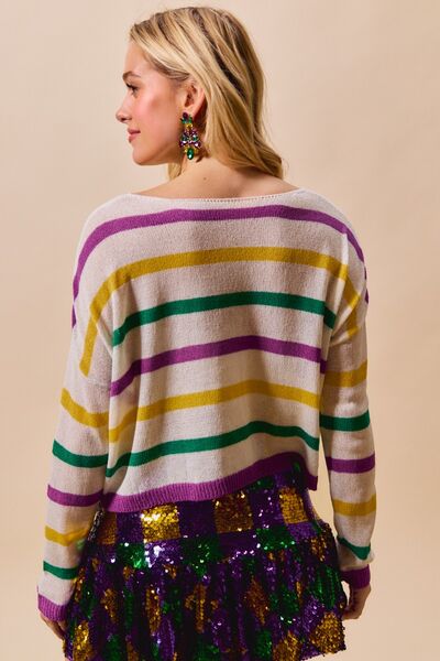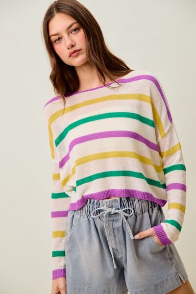 Stripe Pattern V-Neck Long Sleeve Knit Top