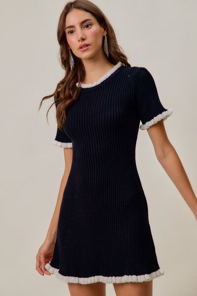 SO ME Cascade Ruffle Ribbed Sweater Cardgian