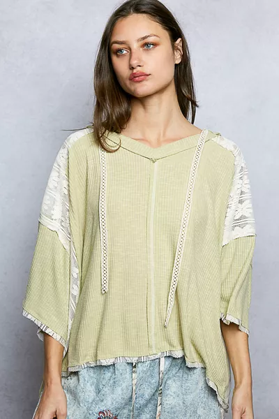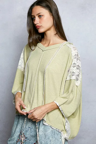 Double Take Full Size Geometric Notched Dolman Sleeve Top