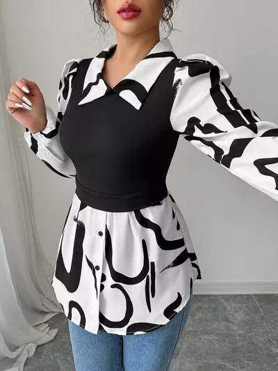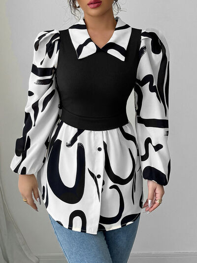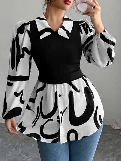 Double Take Full Size Printed Smocked Long Sleeve Blouse