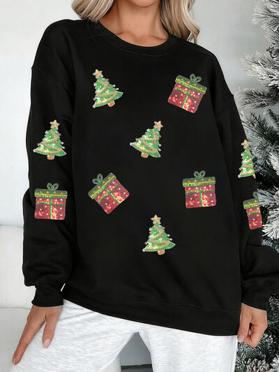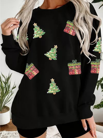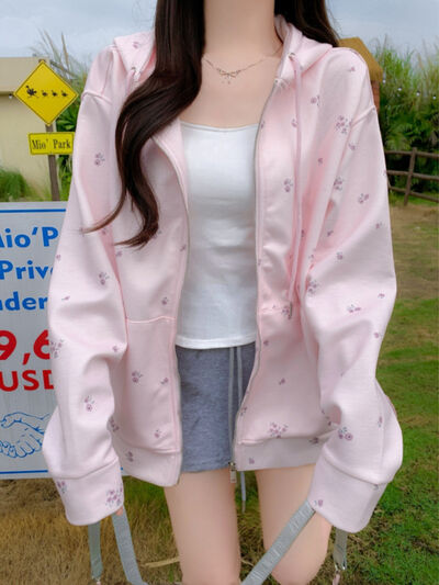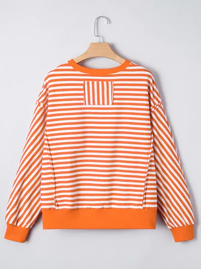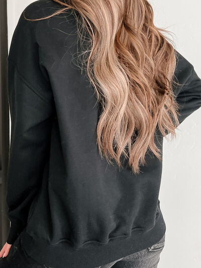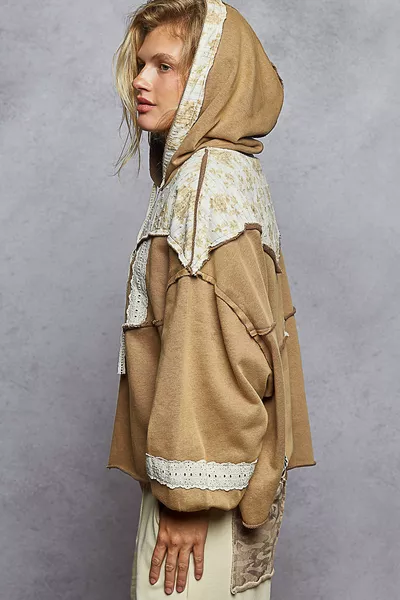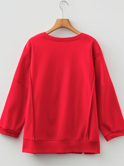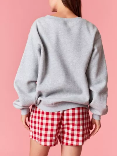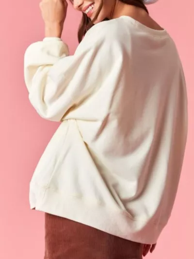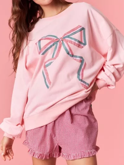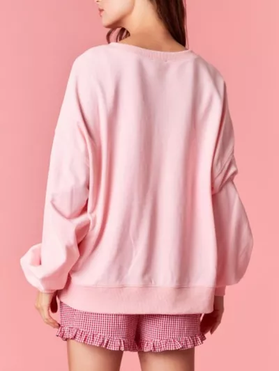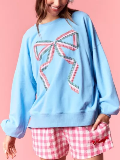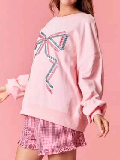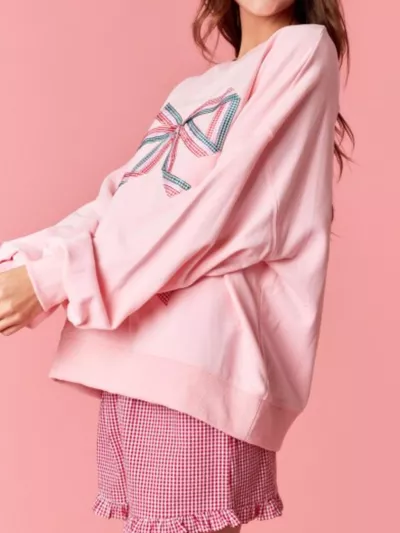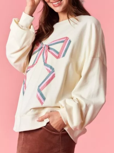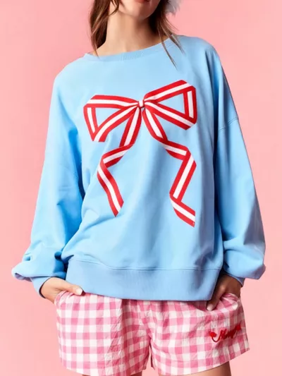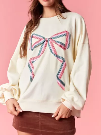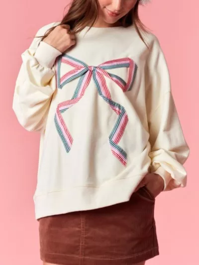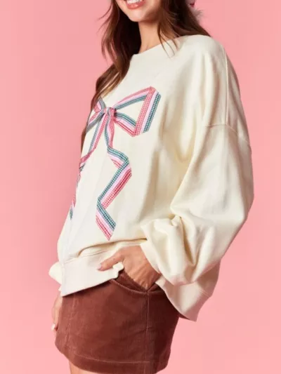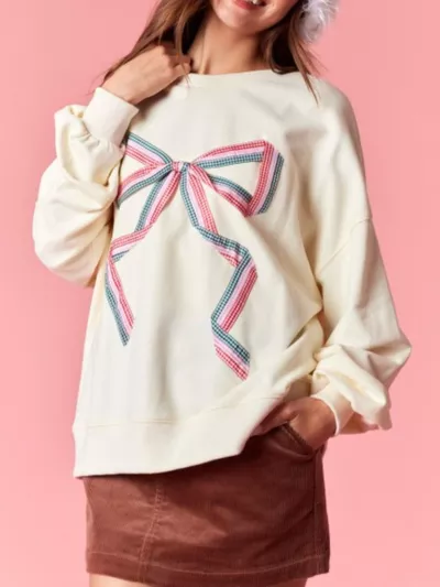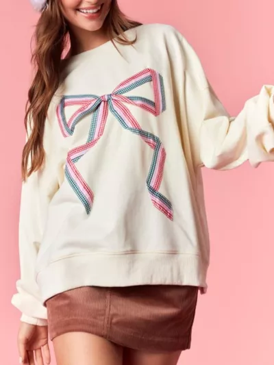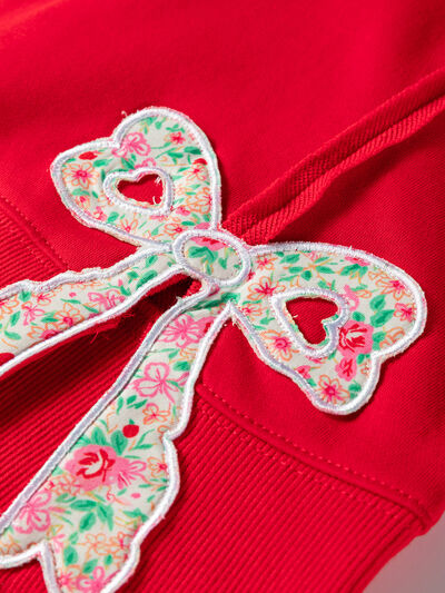 Floral Bow Patched Exposed Seam Patchwork Slit Baggy Sweatshirt
