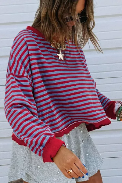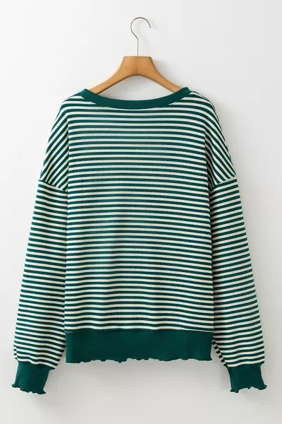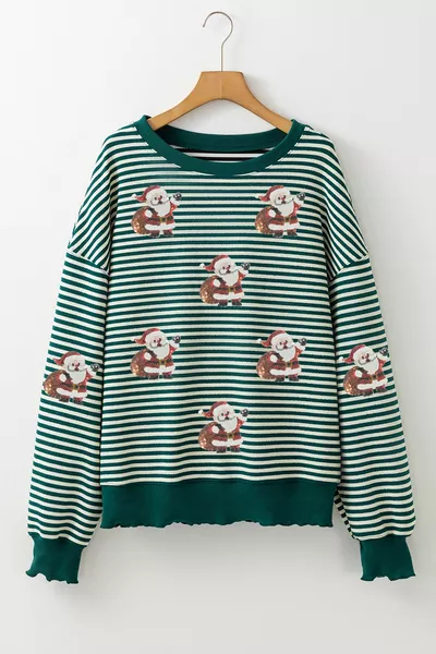 Stripe Holly Jolly Sequin Graphic Drop Shoulder Long Sleeve Top