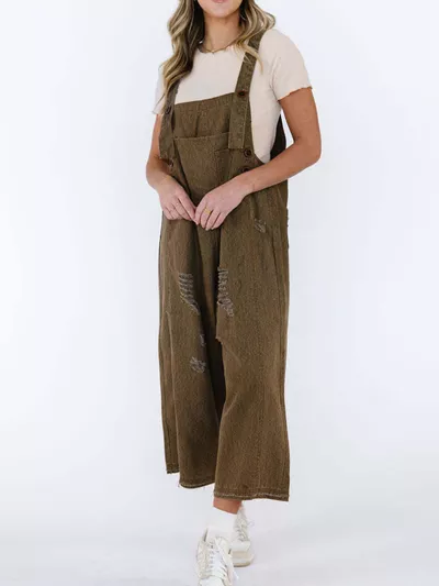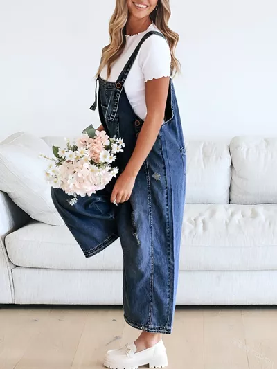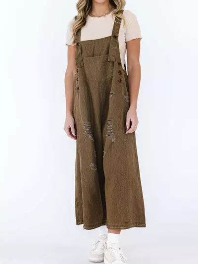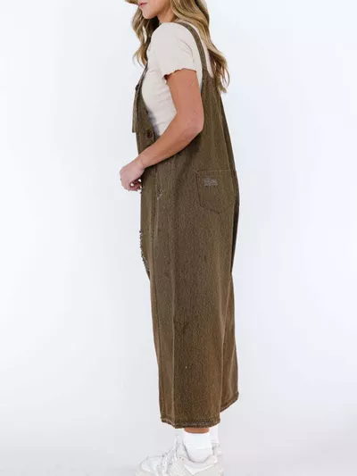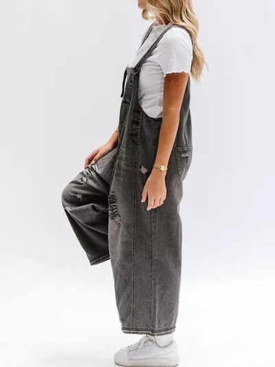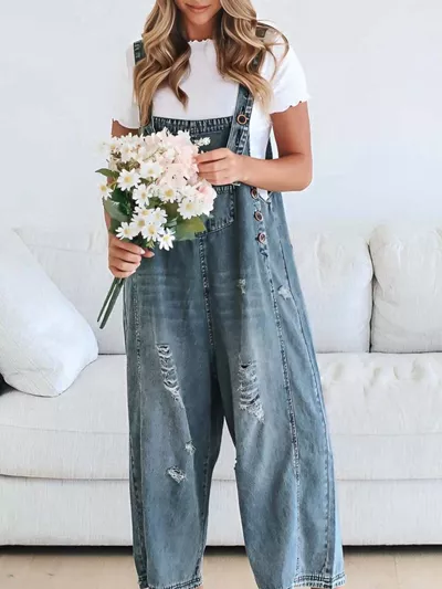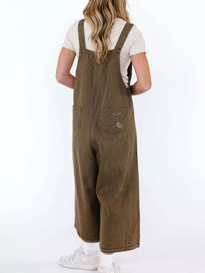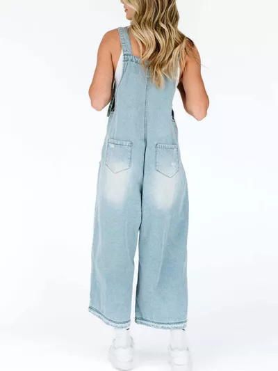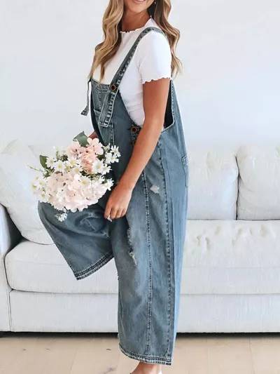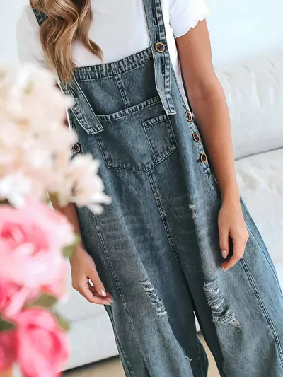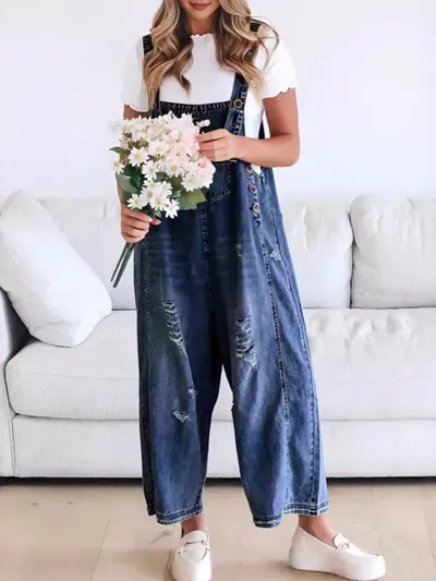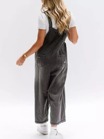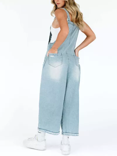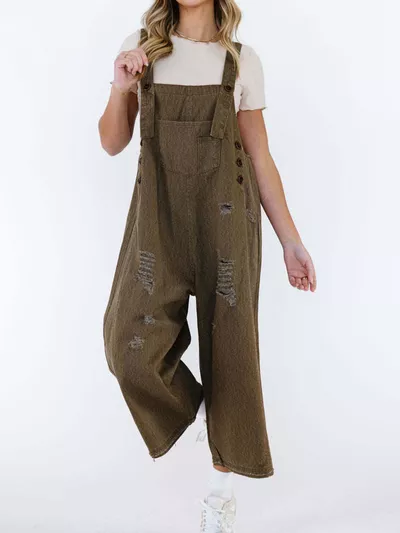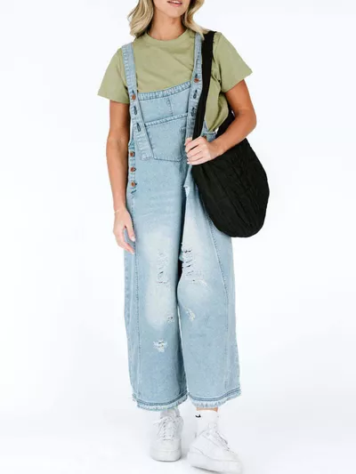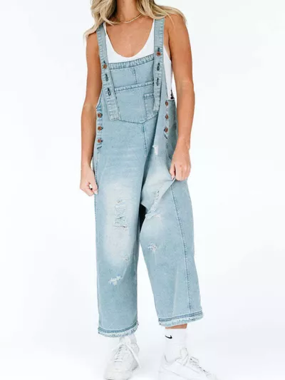 Leopard Print Button Adjustable Straps Cropped Loose Denim Overalls