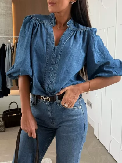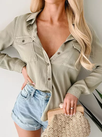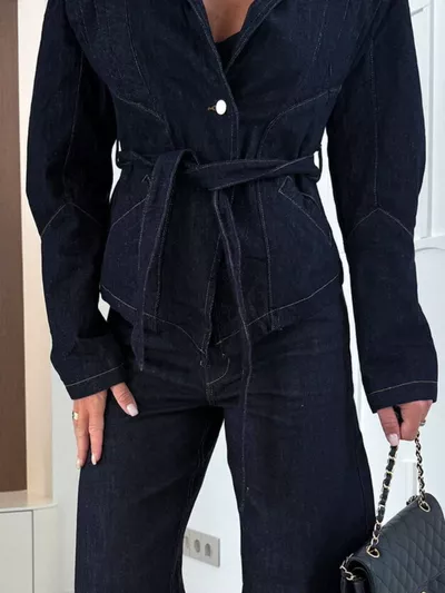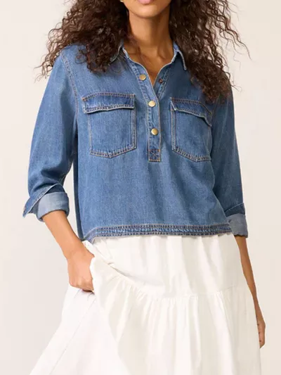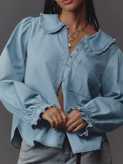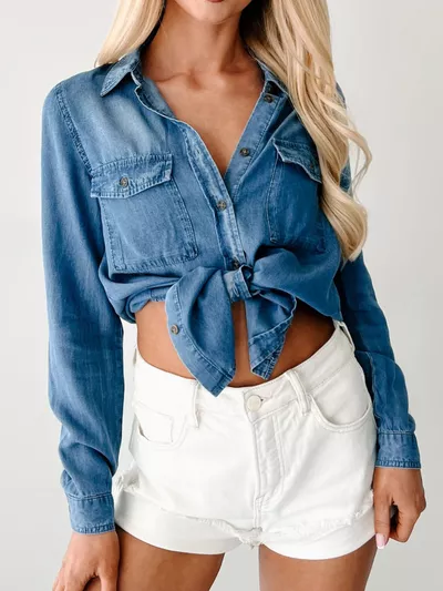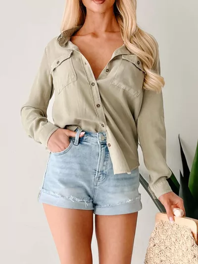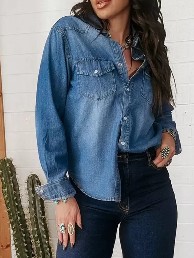 Full Size Pearl Detail Button Up Long Sleeve Denim Jacket Plus Size